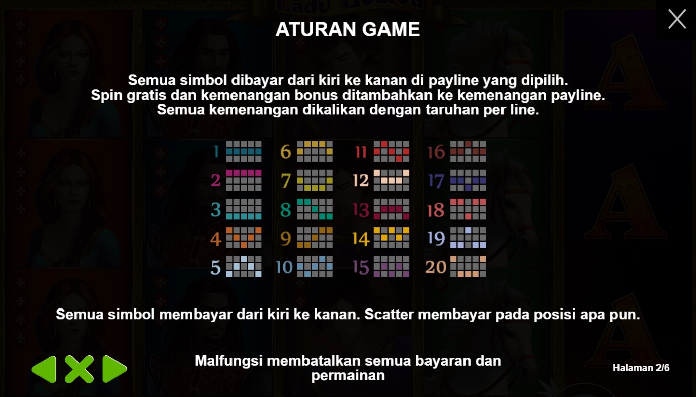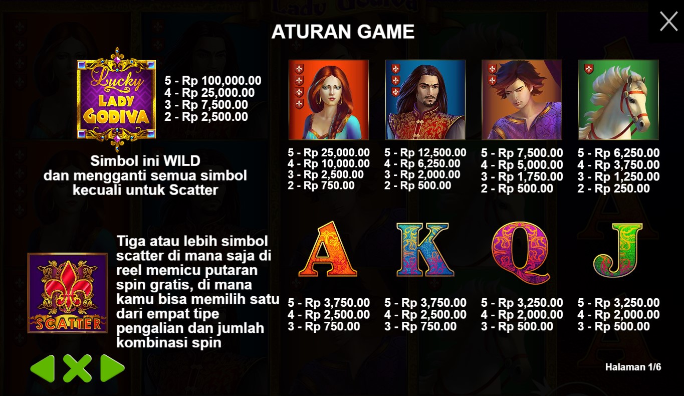 Paytable Lady Godiva adalah panduan penting yang membuka pintu ke dalam keindahan dan potensi kemenangan yang memikat dalam permainan slot online terpercaya ini. Dikembangkan oleh Pragmatic Play, permainan ini mengisahkan kisah legendaris tentang Lady Godiva, wanita berani dengan keindahan yang memukau. Dalam Paytable Lady Godiva, Anda akan menemukan berbagai simbol yang mencakup Lady Godiva sendiri, kuda putih yang gagah, serta simbol-simbol lain yang mencerminkan kemewahan dan pesona zaman dulu. Panduan ini memberikan informasi lengkap tentang nilai-nilai simbol, kombinasi pemenang, dan fitur-fitur bonus yang menarik, termasuk fitur putaran gratis yang dapat memperbesar potensi kemenangan Anda. Dengan memahami Paytable Lady Godiva, Anda akan memiliki pengetahuan yang mendalam untuk merencanakan strategi permainan Anda dan meraih kemenangan yang mempesona.
