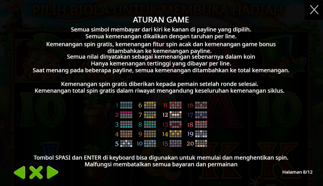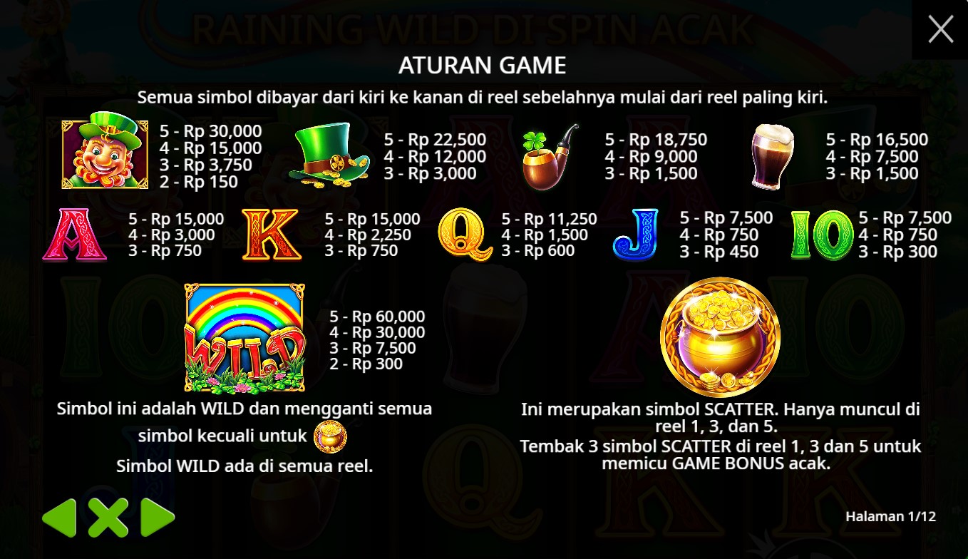 Paytable Slot Online Leprechaun Song adalah sajian yang memukau bagi pecinta slot online. Dikembangkan oleh Pragmatic Play, permainan ini menampilkan simbol-simbol ikonik yang terinspirasi dari mitologi Irlandia, siap membawa pemain ke dalam dunia fantasi penuh warna dan keberuntungan. Pada Leprechaun Song, pemain akan menemukan simbol-simbol seperti Leprechaun, Pot Emas, Shamrock, Klover, dan Ace hingga King. Simbol Leprechaun sendiri menjadi simbol Wild yang dapat menggantikan semua simbol lainnya untuk membentuk kombinasi pemenang. Sementara itu, Pot Emas berperan sebagai simbol Scatter, memicu fitur Putaran Gratis yang dapat memberikan kesempatan meraih hadiah berlipat ganda.
