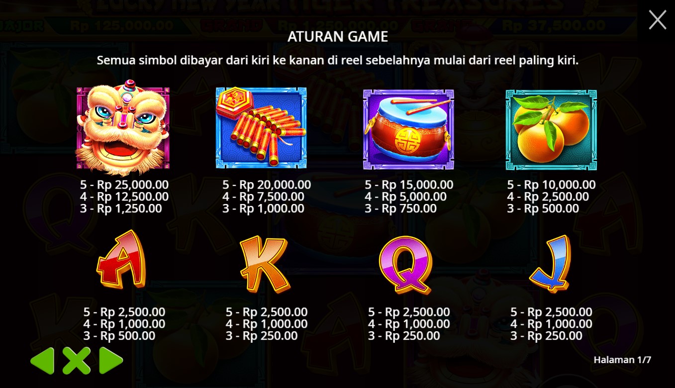 Paytable Slot Online Terpercaya Lucky New Year Tiger Treasures