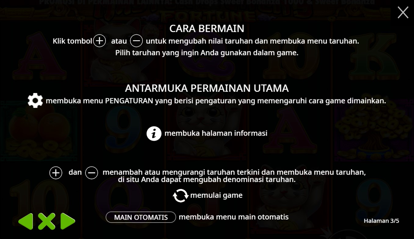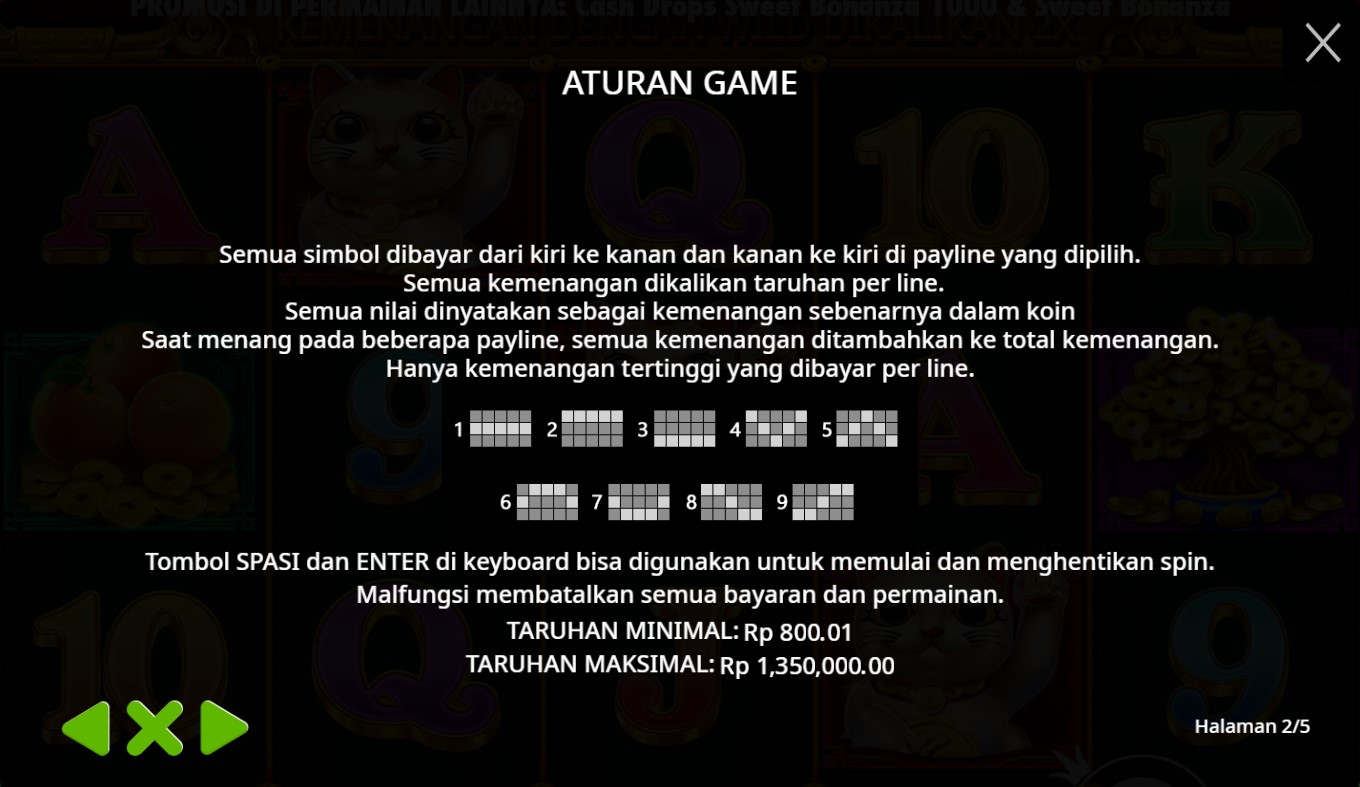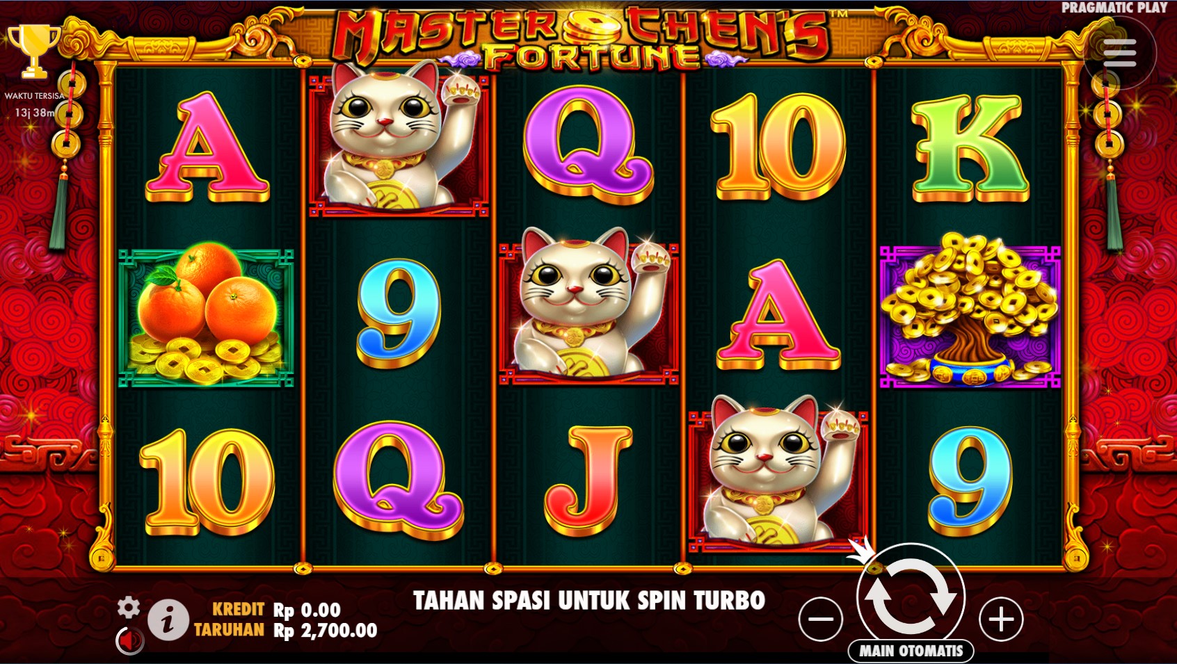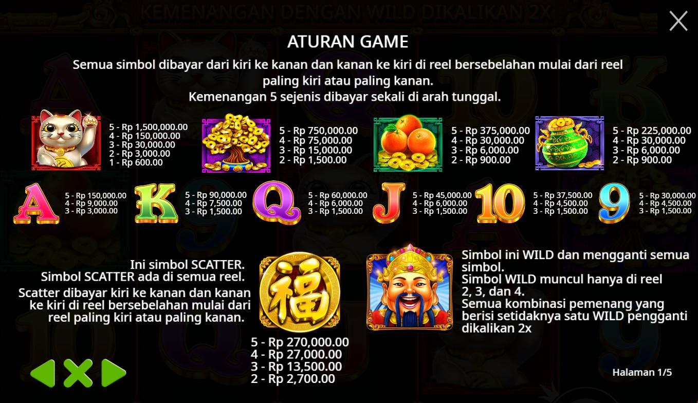 Master Chen's Fortune adalah slot online yang membawa pemain ke dalam dunia kekayaan dan kemakmuran yang berasal dari Asia. Diproduksi oleh Pragmatic Play, provider game terkemuka, Master Chen's Fortune menghadirkan pengalaman bermain yang penuh keajaiban. Dengan grafik yang indah dan detail yang memukau, pemain akan seolah-olah terbawa ke dalam suasana kuil China yang mistis. Berbagai simbol khas budaya China, seperti Naga, Koi, dan Topi Mandarinmemenuhi reels, memberikan kesan yang kental akan kearifan lokal Asia.