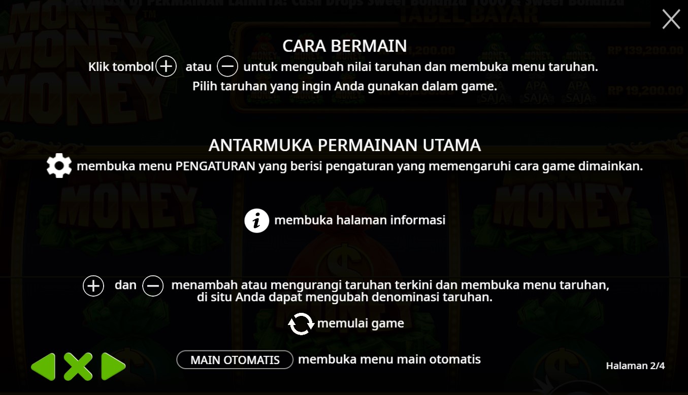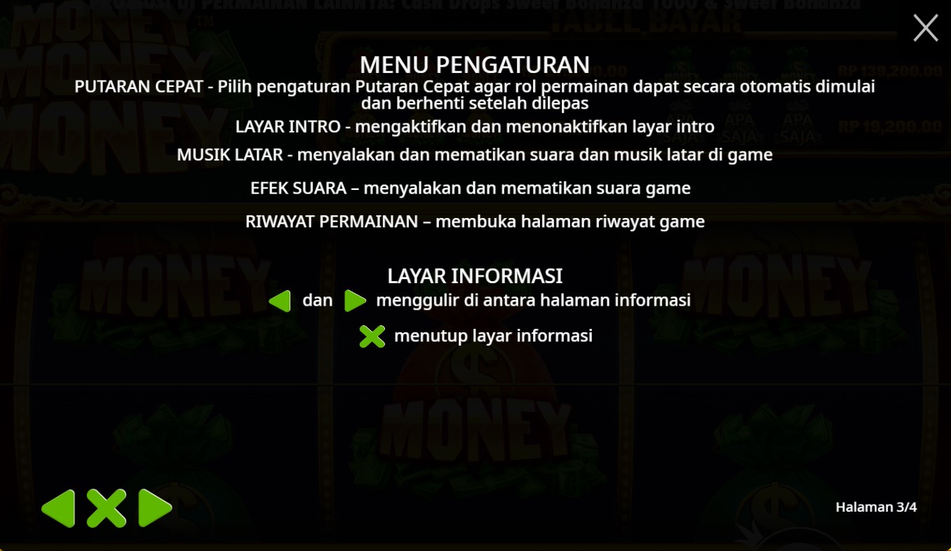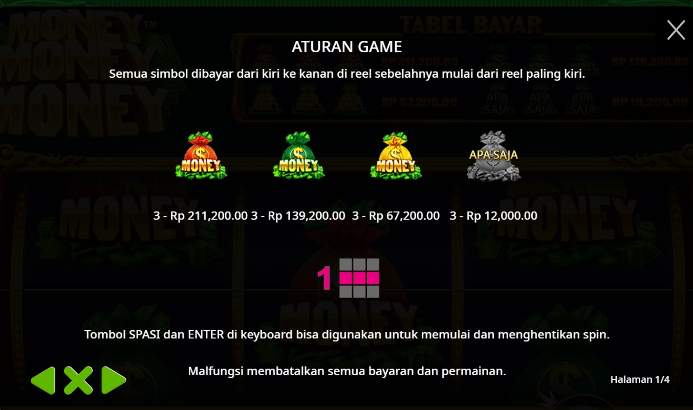 Paytable Slot Online Money Money Money adalah permainan slot online terpercaya yang menawarkan peluang meraih kemenangan besar. Sebagai simbol utama, terdapat berbagai simbol klasik yang familiar bagi pecinta slot, seperti cherry, lemon, tujuh, dan simbol-simbol lain yang bertemakan uang. Grafik yang jernih dan animasi yang halus menciptakan pengalaman bermain yang menyenangkan. Simbol-simbol tersebut hadir dengan warna-warna cerah dan kontras, memberikan tampilan yang elegan serta mudah dikenali. Selain itu, terdapat pula simbol-simbol spesial seperti simbol liar dan simbol scatter yang berperan dalam memicu fitur-fitur unggulan.