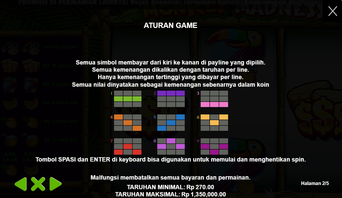 Paytable Slot Online Monkey Madness adalah panduan lengkap yang akan membuka rahasia kombinasi menang dan potensi kemenangan dalam permainan slot online terpercaya ini. Judul ini menawarkan informasi penting mengenai simbol-simbol yang menarik dan peluang hadiah yang dapat Anda dapatkan di Monkey Madness. Kata pertama paragraf ini diawali dengan kalimat "Paytable Slot Online Monkey Madness adalah" untuk menarik perhatian pembaca dan menekankan judul. Dalam Paytable Slot Online Monkey Madness, Anda akan menemukan tabel pembayaran yang detail, menampilkan nilai kemenangan untuk setiap simbol yang muncul di gulungan. Simbol-simbol yang menggemaskan seperti monyet-monyet ceria, buah-buahan segar, dan harta karun tersembunyi akan menjadi kunci bagi kesuksesan Anda. Anda akan mempelajari kombinasi simbol yang menghasilkan pembayaran tertinggi dan fitur-fitur bonus yang dapat meningkatkan potensi kemenangan Anda. Dengan memahami Paytable Slot Online Monkey Madness dengan baik, Anda dapat merencanakan strategi permainan yang cerdas dan memaksimalkan peluang kemenangan Anda.