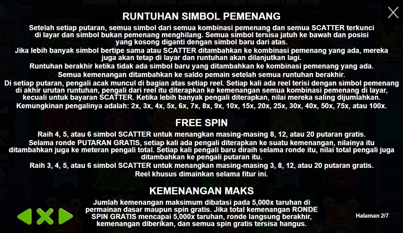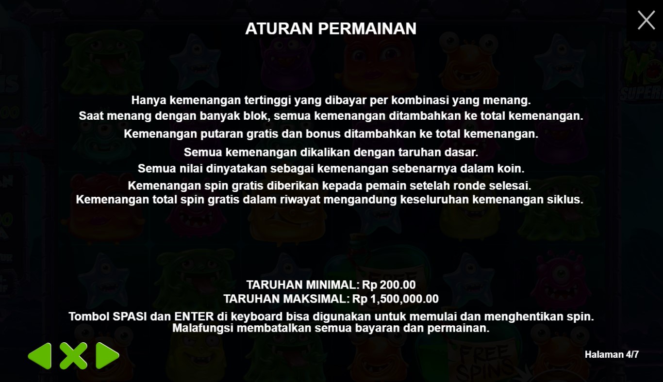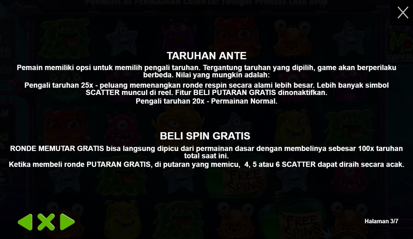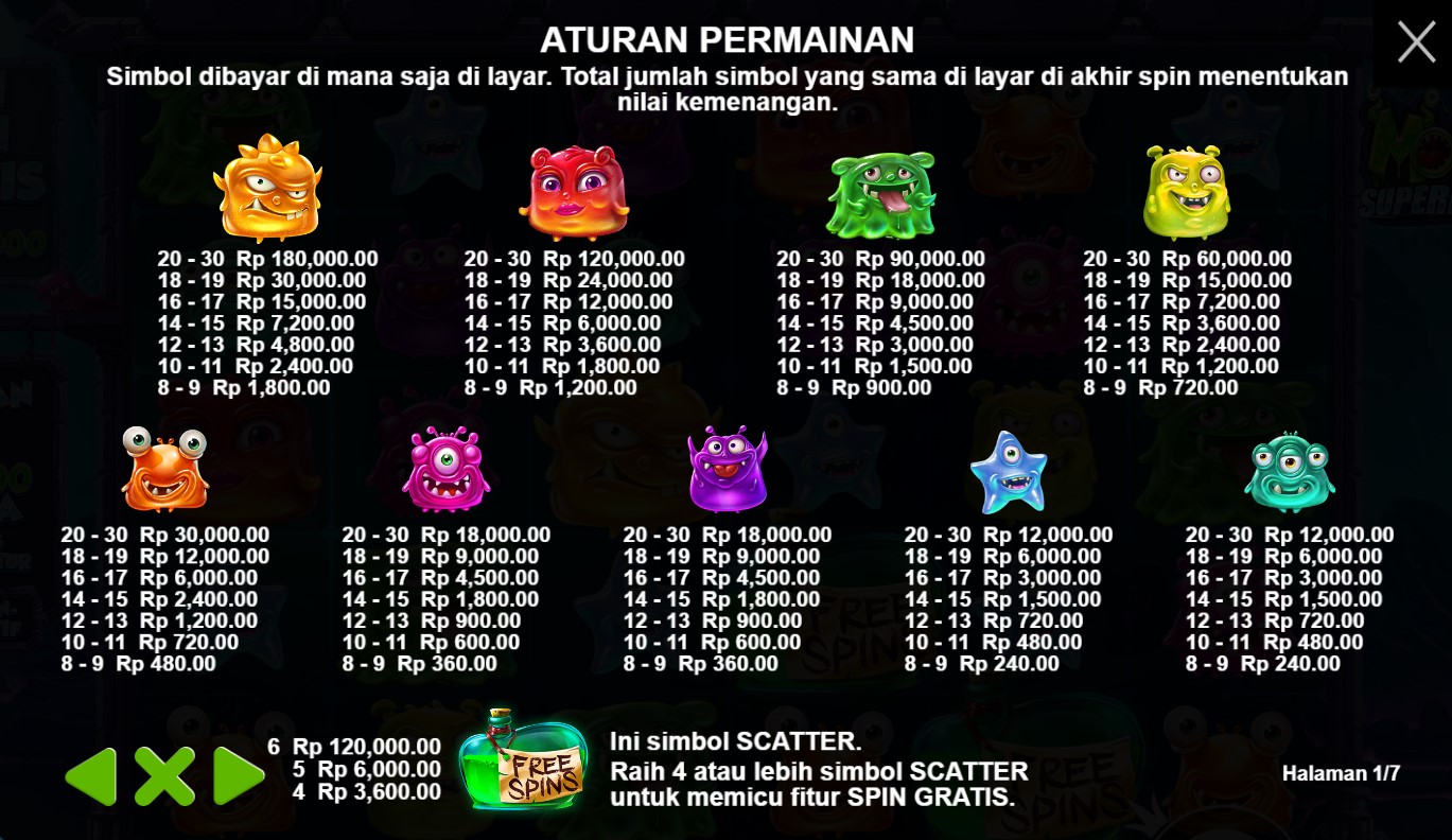 Paytable Slot Online Monster Superlanche adalah panduan penting yang akan membantu Anda mengungkap rahasia pembayaran simbol-simbol menarik dan peluang kemenangan dalam permainan slot online terpercaya ini. Judul ini menawarkan informasi yang diperlukan mengenai pembayaran simbol-simbol dan potensi hadiah yang dapat Anda raih di Monster Superlanche. Kata pertama paragraf ini diawali dengan kalimat "Paytable Slot Online Monster Superlanche adalah" untuk menarik perhatian pembaca dan menekankan judul. Dalam Paytable Slot Online Monster Superlanche, Anda akan menemukan tabel pembayaran yang terperinci, menampilkan nilai kemenangan untuk setiap kombinasi simbol yang muncul di gulungan.