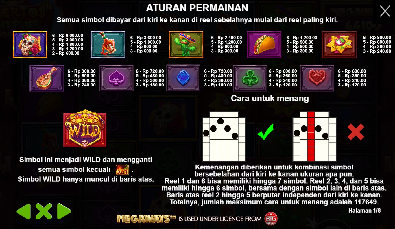 Paytable Slot Online Terpercaya Muertos Multiplier Megaways