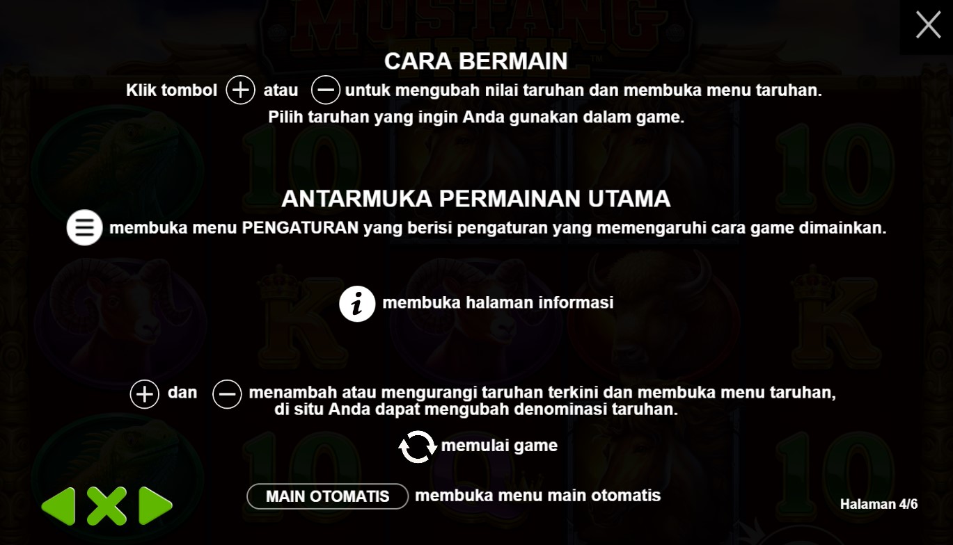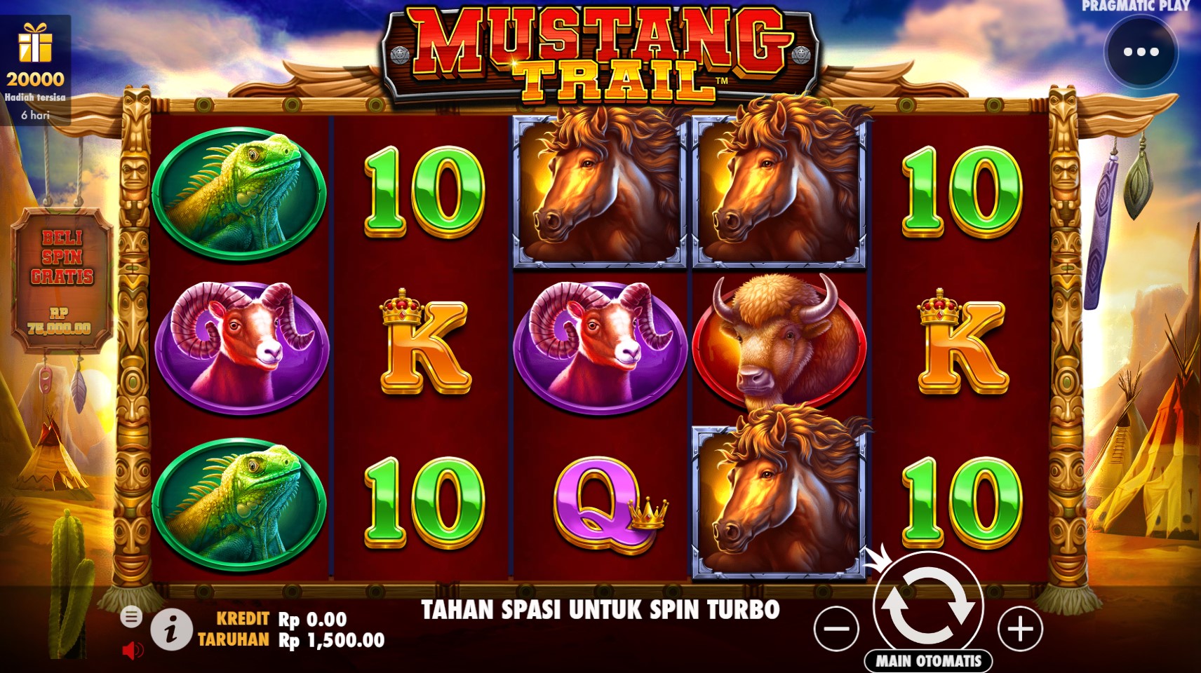 Mustang Trail adalah permainan slot online terpercaya yang akan membawa Anda dalam petualangan seru melalui padang rumput Amerika Barat yang legendaris. Judul ini menawarkan nuansa yang menarik dan unik sekaligus memberikan keyakinan kepada pemain dengan status sebagai slot online terpercaya. Kata pertama paragraf ini diawali dengan kalimat "Mustang Trail adalah" untuk menarik perhatian pembaca dan menekankan judul. Dalam permainan ini, Anda akan merasakan sensasi kebebasan dan petualangan saat melintasi jalan setapak Mustang Trail yang menantang. Mustang Trail, yang dibuat oleh Pragmatic Play, menawarkan pengalaman bermain yang mengagumkan dengan desain grafis yang memukau dan tampilan visual yang kaya. Anda akan menemukan gulungan-gulungan yang dipenuhi dengan simbol-simbol khas Amerika Barat, seperti kuda Mustang yang perkasa, pohon kaktus, dan ikon-ikon lainnya yang mencerminkan keindahan dan kekuatan alam.