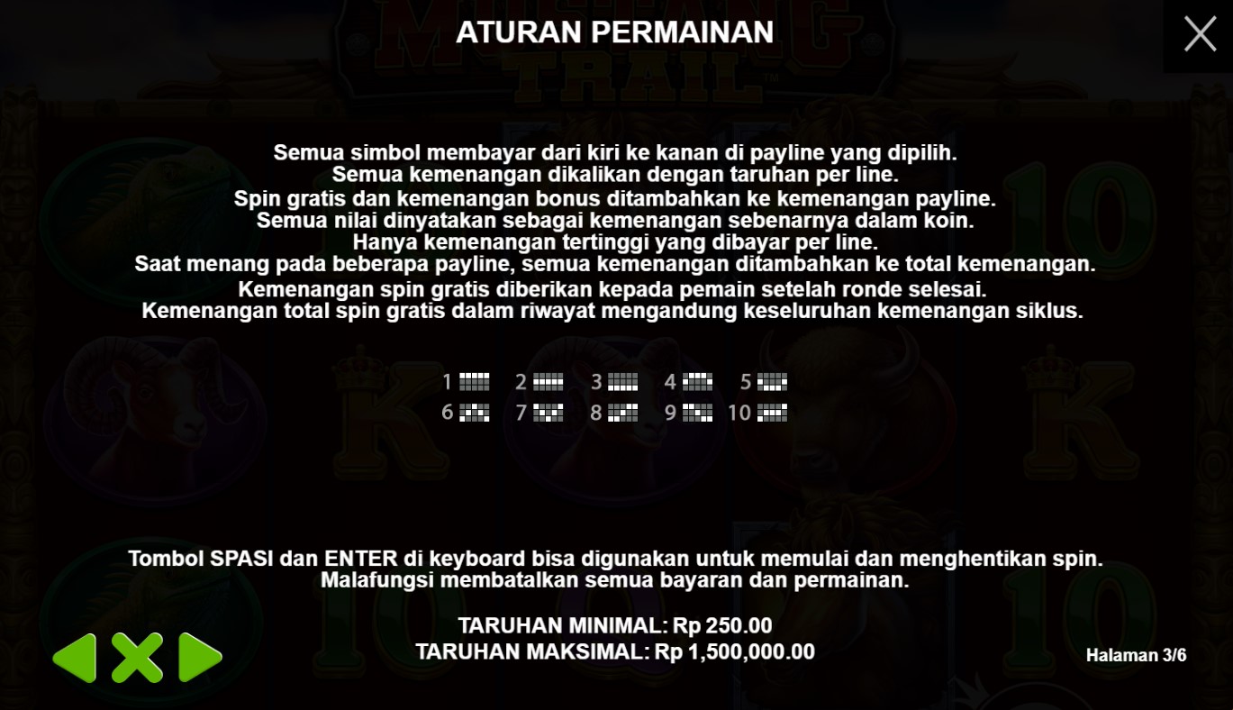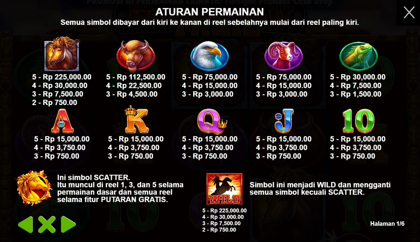 Paytable Slot Online Mustang Trail adalah panduan penting yang akan membantu Anda memahami pembayaran simbol-simbol yang menarik dan peluang kemenangan dalam permainan slot online terpercaya ini. Judul ini menawarkan nuansa yang menarik dan unik sekaligus memberikan keyakinan kepada pemain dengan status sebagai slot online terpercaya. Kata pertama paragraf ini diawali dengan kalimat "Paytable Slot Online Mustang Trail adalah" untuk menarik perhatian pembaca dan menekankan judul. Dalam Paytable Slot Online Mustang Trail, Anda akan menemukan tabel pembayaran yang lengkap, memberikan informasi tentang nilai kemenangan untuk setiap kombinasi simbol yang muncul di gulungan. Simbol-simbol yang terinspirasi oleh Amerika Barat, seperti kuda Mustang yang perkasa, pohon kaktus, dan artefak budaya lainnya, akan menjadi kunci dalam meraih kemenangan yang menguntungkan. Anda akan mempelajari kombinasi simbol yang paling bernilai dan fitur-fitur bonus yang dapat meningkatkan peluang Anda untuk meraih hadiah yang menggiurkan.