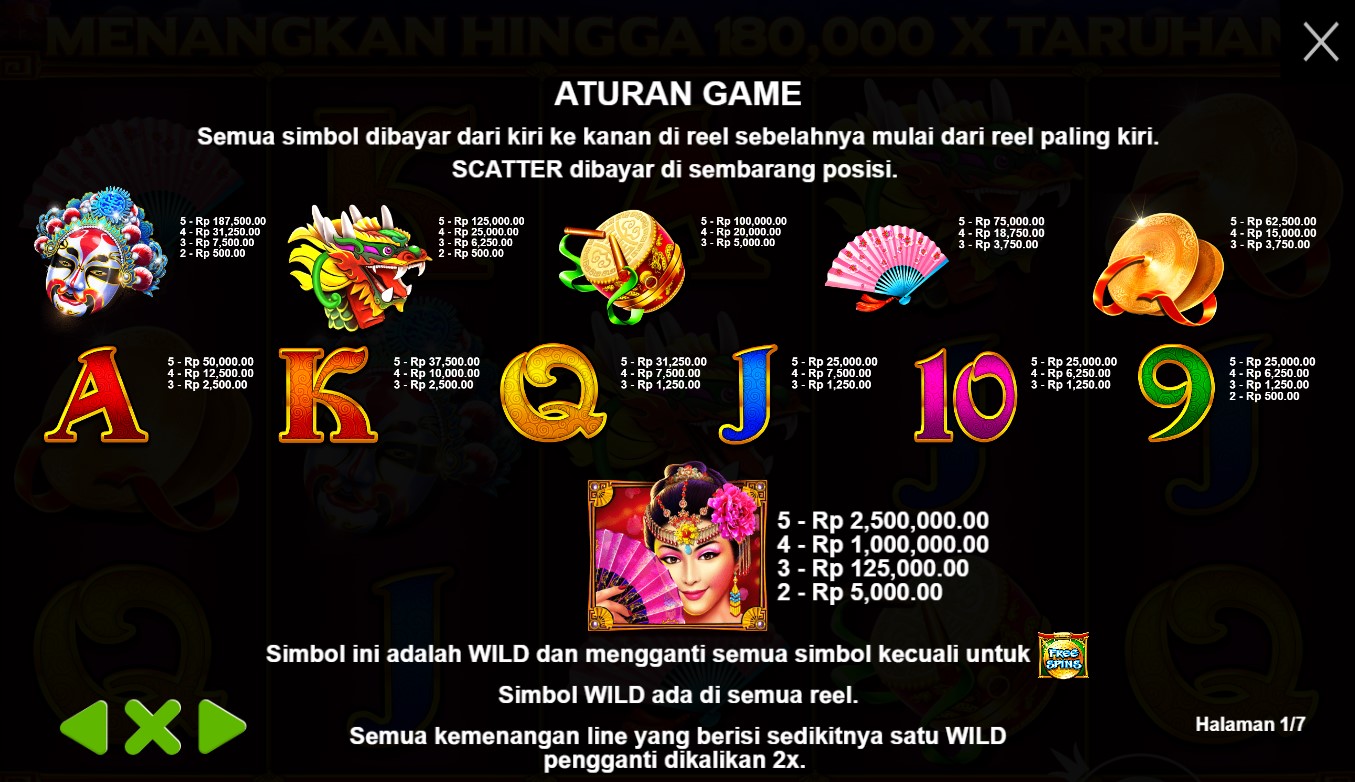 Paytable Slot Online Peking Luck adalah panduan penting yang mengungkapkan rahasia simbol-simbol menarik dan potensi kemenangan yang menggiurkan dalam permainan slot online terpercaya ini. Judul ini menarik perhatian dengan kombinasi yang unik dan menjanjikan sebagai slot online terpercaya. Kata pertama paragraf ini diawali dengan kalimat "Paytable Slot Online Peking Luck adalah" untuk menonjolkan judul dan menekankan pentingnya panduan ini. Dalam Paytable Slot Online Peking Luck, Anda akan menemukan tabel pembayaran yang memberikan informasi penting tentang nilai kemenangan untuk setiap kombinasi simbol yang muncul di gulungan. Simbol-simbol yang mencerminkan keberuntungan dan kekayaan Tiongkok, serta fitur-fitur bonus menarik seperti putaran gratis dan simbol liar, akan menjadi kunci dalam meraih kemenangan yang menguntungkan.