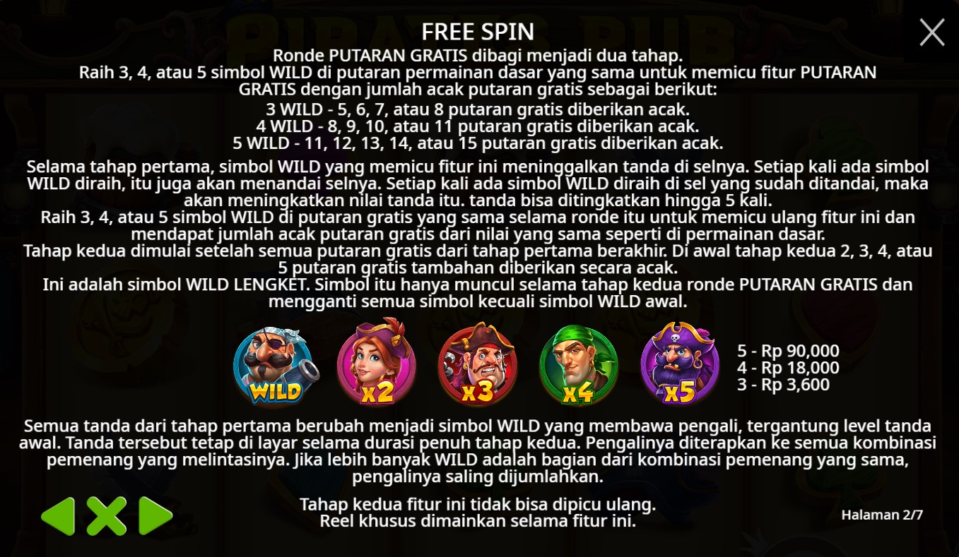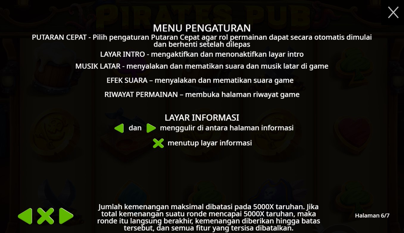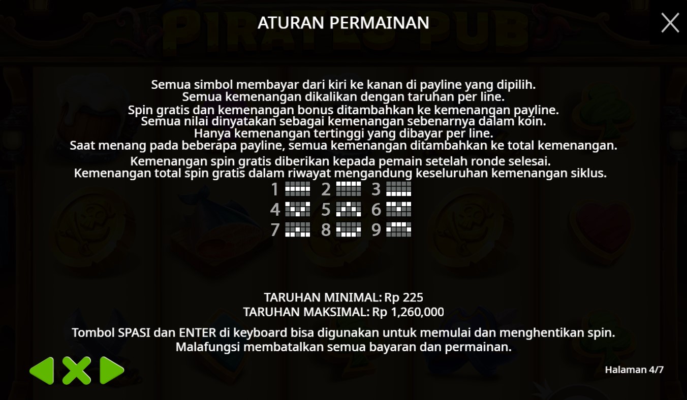 Paytable Slot Online Pirates Pub adalah petualangan seru di dunia bajak laut yang penuh dengan harta karun dan keseruan. Dalam permainan ini, setiap simbol memiliki perannya masing-masing dalam membawa pemain ke dalam pengalaman spektakuler. Anda akan menemukan simbol-simbol menarik seperti Kapten Bajak Laut yang berani, Peti Harta Karun yang mengandung bonus melimpah, serta Bendera Bajak Laut yang menambah suasana petualangan. Tak ketinggalan, simbol Minuman Khas yang menjadi ciri khas pub para bajak laut dan Simbol Jolly Roger yang ikonik. Dengan kombinasi simbol-simbol ini, setiap putaran memberikan peluang menakjubkan untuk meraih kemenangan besar.