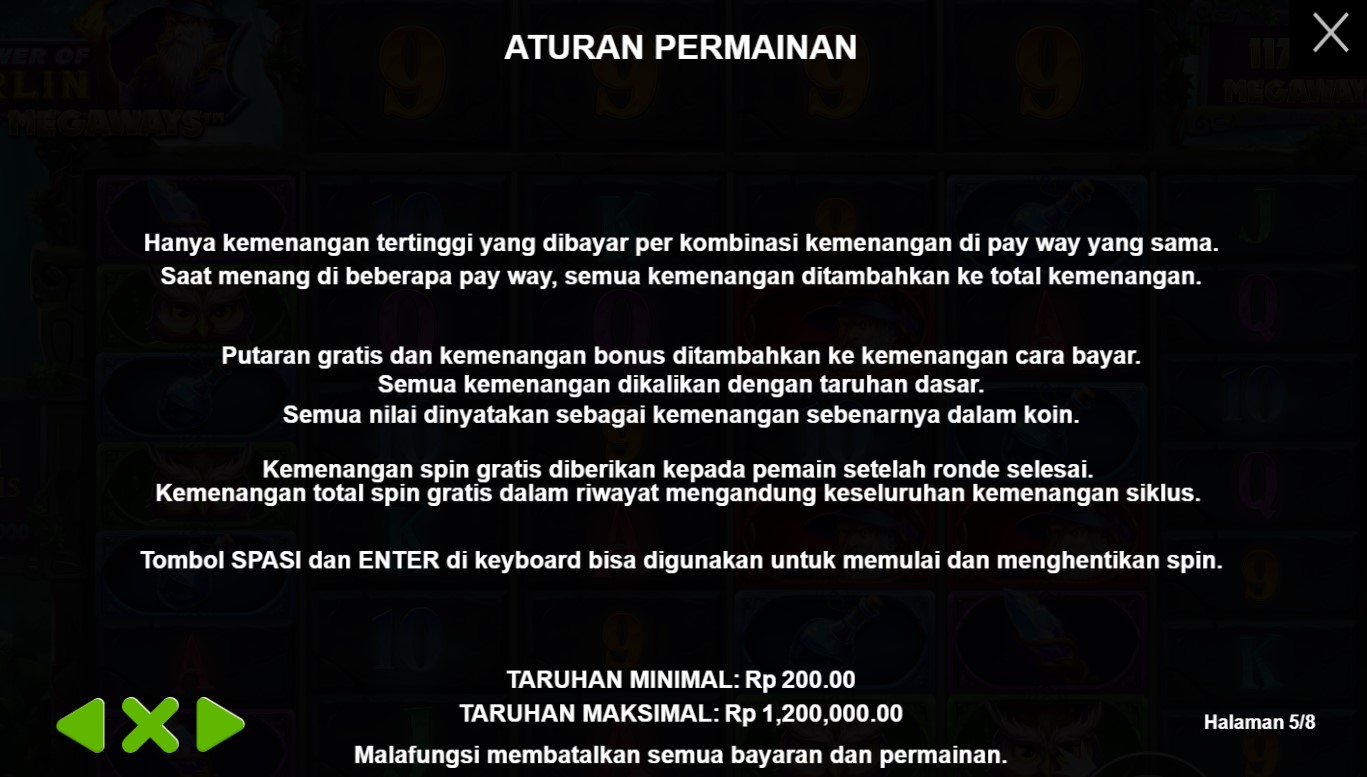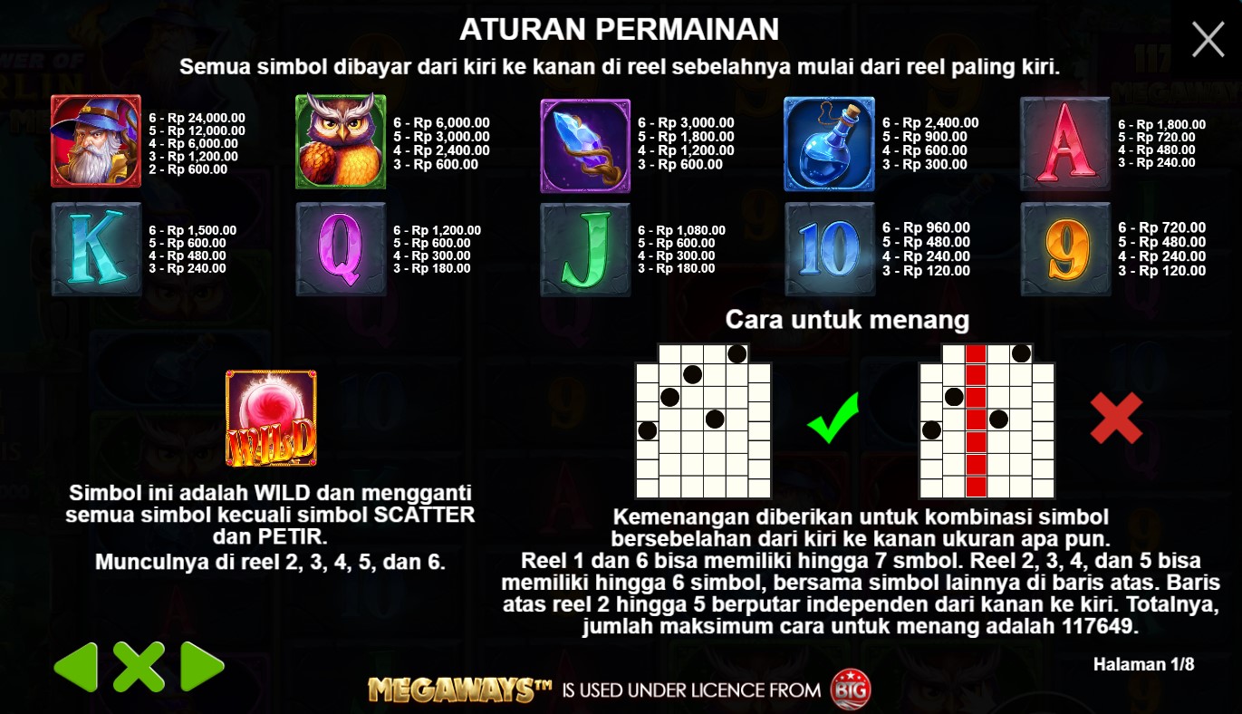 Paytable Slot Online Terpercaya Power Of Merlin Megaways