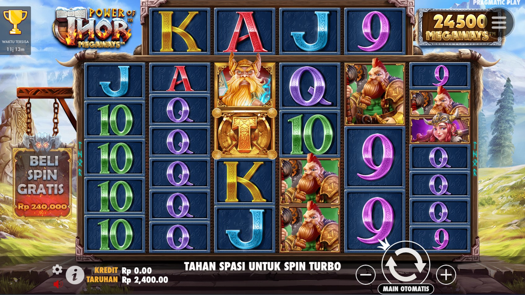 Keunggulan Permainan Power Of Thor Megaways adalah fitur Megaways yang ikonik, menawarkan ribuan cara untuk meraih kemenangan spektakuler. Grafis yang luar biasa dan animasi yang halus menciptakan pengalaman bermain yang epik dan mengasyikkan. Simbol-simbol yang mencerminkan kekuatan dan kejayaan dewa Norse, seperti palu petir, helm perang, dan pedang, memberikan nilai yang berbeda-beda dan peluang kemenangan besar. Fitur bonus yang menggiurkan dan gameplay yang menarik membuat Power Of Thor Megaways menjadi pilihan yang tepat bagi para penggemar slot online. Rasakan kekuatan Thor di ujung jari Anda dan nikmati petualangan luar biasa dalam dunia mitos yang penuh keajaiban. Bergabunglah sekarang dan raih kemenangan besar dengan Power Of Thor Megaways, slot online terpercaya dari Pragmatic Play.
