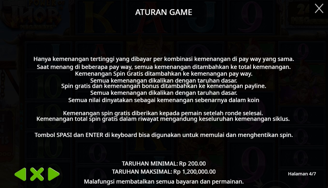 Paytable Slot Online Terpercaya Power Of Thor Megaways