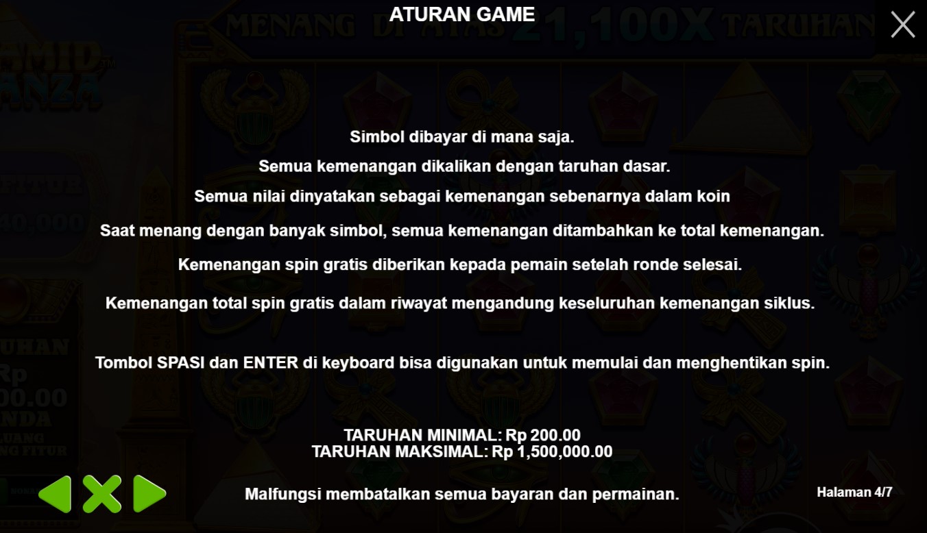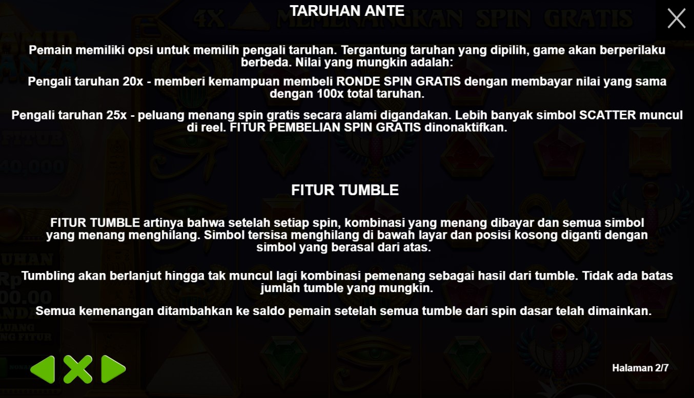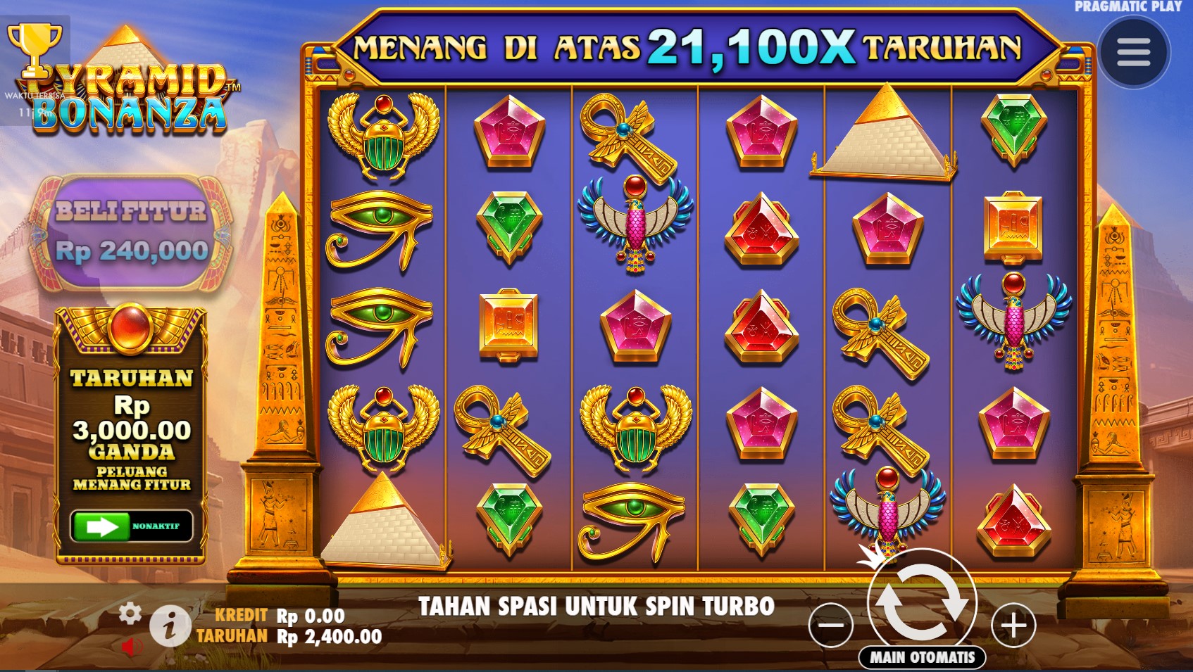 Keunggulan Permainan Pyramid Bonanza adalah pengalaman slot online yang menggabungkan keajaiban Mesir kuno dengan sensasi bermain yang seru. Dikembangkan oleh Pragmatic Play, permainan ini menawarkan pengalaman bermain yang unik dan menarik. Salah satu keunggulannya adalah tema yang memikat, dengan simbol-simbol yang menggambarkan peradaban Mesir kuno, seperti patung-patung dewa, gulungan papyrus, dan ikon-ikon hieroglifik yang misterius. Dengan grafis yang menakjubkan dan suara yang memikat, Anda akan merasakan pesona piramida yang legendaris. Selain itu, Pyramid Bonanza dilengkapi dengan fitur-fitur bonus yang menarik, seperti putaran gratis dan fitur jatuhnya simbol baru setelah setiap kemenangan, memberikan peluang besar untuk meraih hadiah-hadiah yang menguntungkan.