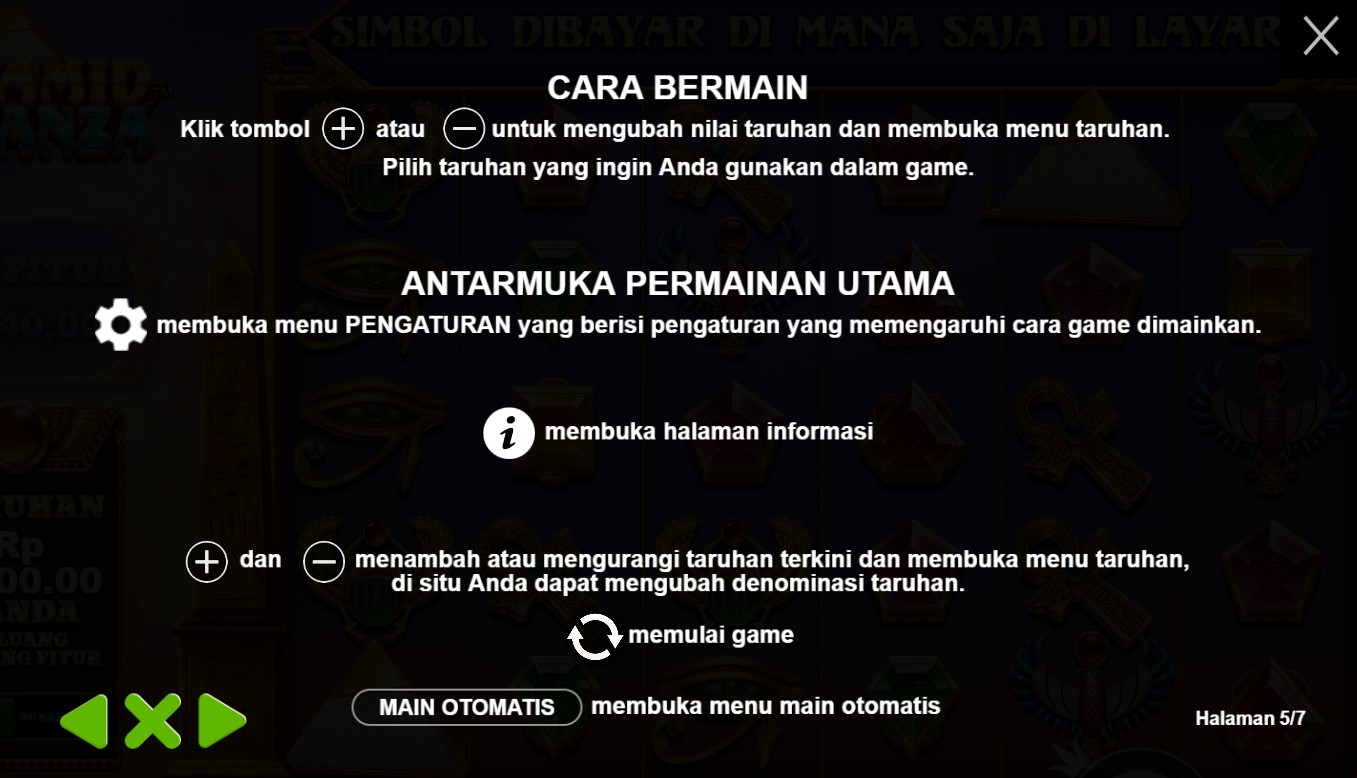 Pyramid Bonanza adalah slot online yang membawa Anda ke dalam petualangan di dalam piramida kuno yang penuh misteri. Dikembangkan oleh Pragmatic Play, permainan ini menawarkan pengalaman bermain yang unik dan menarik. Dalam Pyramid Bonanza, Anda akan menemukan simbol-simbol yang menggambarkan artefak-arte yang berhubungan dengan peradaban Mesir kuno, seperti patung-patung dewa, gulungan papyrus, dan ikon-ikon hieroglifik yang misterius.