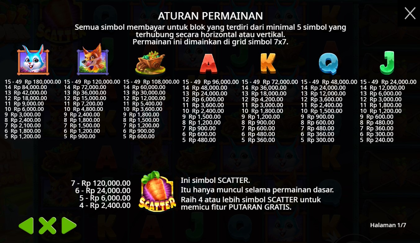 Paytable Slot Online Rabbit Garden adalah salah satu yang paling menarik di antara game-game slot online terpercaya dari Pragmatic Play. Dengan tema taman yang asri dan kelinci-kelinci lucu sebagai fokus utama, pemain akan dimanjakan dengan pengalaman bermain yang segar dan menghibur. Simbol-simbol yang muncul pada Rabbit Garden terdiri dari beragam jenis kelinci yang menggemaskan. Mulai dari kelinci putih, coklat, hingga kelinci berwarna-warni, semuanya hadir untuk memberikan tampilan visual yang memikat. Selain itu, terdapat pula ikon-ikon tematik lainnya, seperti wortel, bunga, dan logo permainan yang menjadi simbol pembayaran tertinggi.