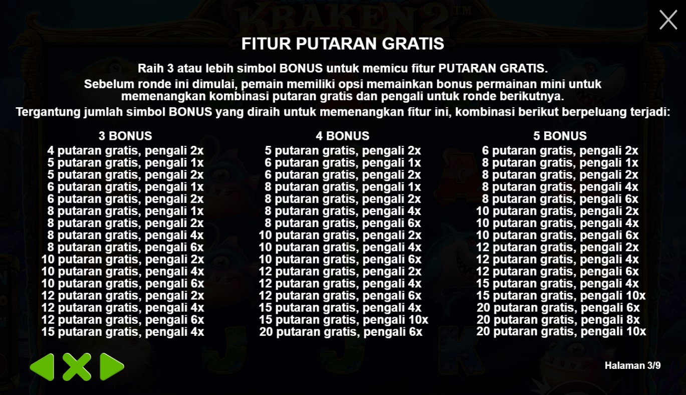Paytable Slot Online Release The Kraken 2 adalah panduan lengkap untuk meraih kemenangan besar di slot online terpercaya ini. Dapatkan informasi tentang simbol-simbol khusus, fitur bonus, dan potensi pembayaran yang menggiurkan. Pahami setiap detail paytable untuk strategi bermain yang lebih efektif dan tingkatkan peluang Anda untuk menang. Jelajahi dunia bawah laut yang epik dan nikmati pengalaman bermain yang seru dengan "Release The Kraken 2". Segera mainkan slot ini dan raih hadiah-hadiah menggiurkan yang menanti Anda!