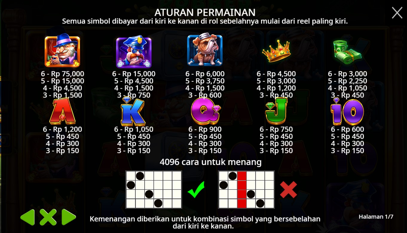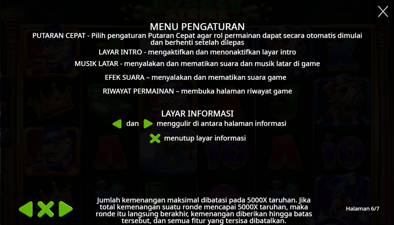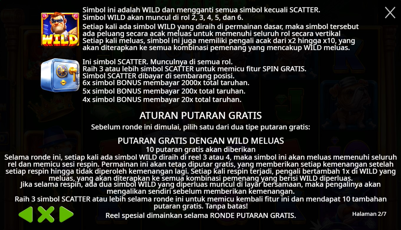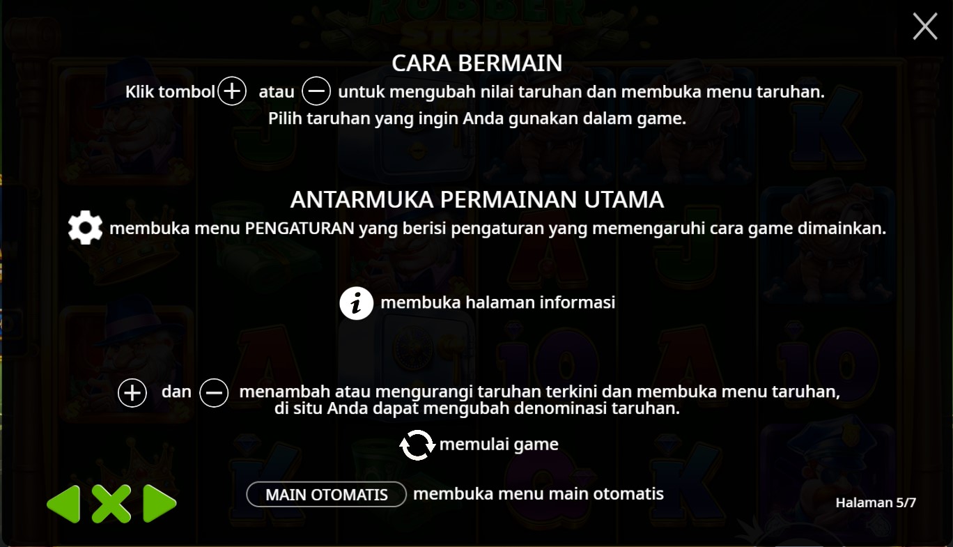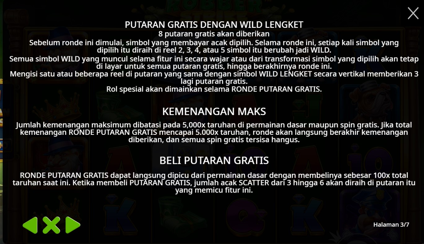 Paytable Slot Online Terpercaya Robber Strike adalah panduan penting yang akan membawa Anda ke dalam dunia seru dari permainan slot yang penuh aksi. Dalam game ini, Anda akan menemui berbagai simbol menarik yang dapat meningkatkan peluang menang besar. Simbol utama termasuk Robber, yang menjadi karakter utama dalam aksi pencurian serunya, serta Polisi yang siap mengejar Anda. Selain itu, terdapat simbol Tumpukan Uang yang menggambarkan kekayaan yang bisa Anda raih, dan simbol Peta yang memberikan petunjuk menuju jackpot. Tak ketinggalan, simbol Kunci dan Mobil Balap yang menambah keseruan serta intensitas permainan. Setiap simbol memiliki nilai tersendiri dan kombinasi unik yang bisa membawa Anda menuju kemenangan gemilang. Dengan desain yang menarik dan fitur bonus menggiurkan, Robber Strike tidak hanya menyajikan permainan yang menarik, tetapi juga memberikan kesempatan emas untuk meraih hadiah fantastis.