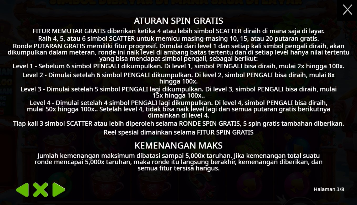 Paytable Slot Online Santa's Great Gifts adalah kunci untuk mengungkap keajaiban Natal di dalam permainan ini. Dibuat oleh Pragmatic Play, slot terpercaya ini menampilkan beragam simbol yang meriah dan memikat, seperti kaus kaki Natal, renjatan salju, rantai tinsel, dan bel kunci. Setiap simbol memiliki nilai pembayaran yang berbeda, sementara Santa Claus sebagai simbol utama dengan pembayaran tertinggi. Jangan lewatkan simbol wildcard yang diwujudkan oleh topi Santa yang bisa menggantikan simbol lain untuk membentuk kombinasi pemenang. Selain itu, simbol bonus seperti kotak hadiah dan pohon epifani bisa memicu fitur bonus yang menguntungkan. Dengan putaran bebas yang menarik, menuju keseruan penuh hadiah-hadiah beserta ajakan rahasianya dalam Santa's Great Gifts!
