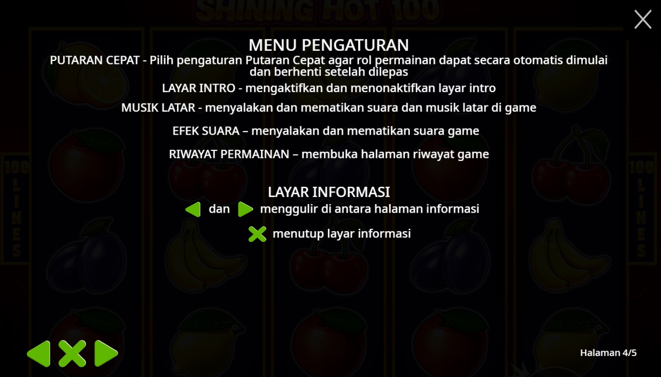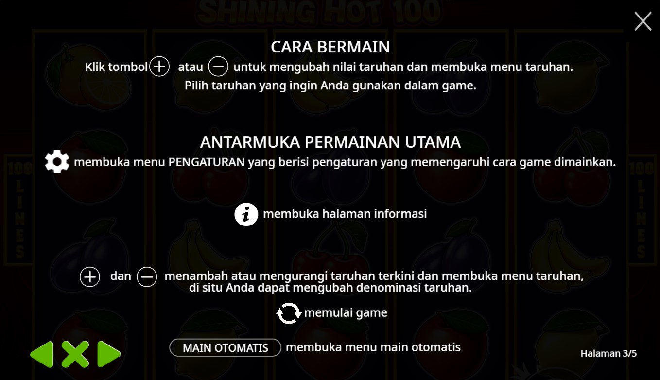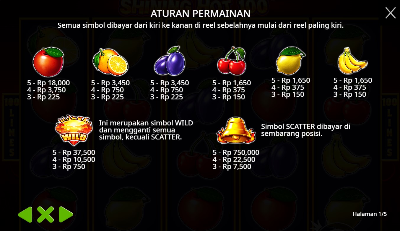 Paytable Slot Online Terpercaya Shining Hot 100 adalah gerbang Anda menuju dunia penuh warna dan keseruan. Dalam permainan ini, para pemain akan disuguhkan dengan berbagai simbol menarik yang siap memberikan pengalaman bermain yang tak terlupakan. Di antara simbol-simbol yang terdapat di Shining Hot 100, Anda akan menemukan simbol buah klasik seperti ceri, lemon, jeruk, dan anggur, yang membawa nuansa nostalgia sekaligus kesenangan. Tak ketinggalan, ada juga simbol angka tujuh yang terkenal, terkenal sebagai simbol keberuntungan, serta simbol bintang yang memberikan hadiah istimewa.