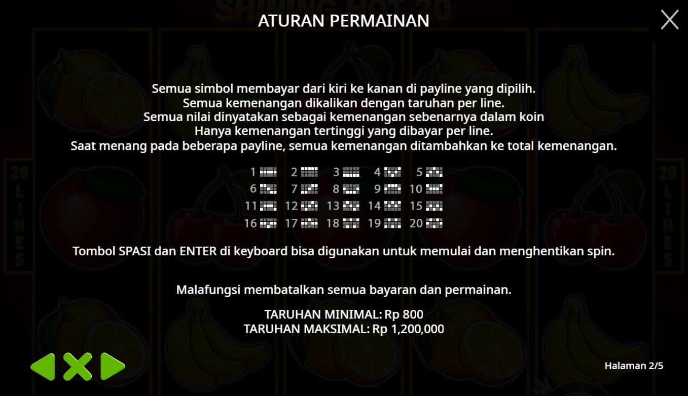 Paytable Slot Online Shining Hot 20 adalah fitur yang menarik perhatian para pecinta game slot online. Diproduksi oleh Pragmatic Play, game ini hadir dengan berbagai simbol klasik kasino yang menyajikan nilai pembayaran yang menarik. Mulai dari simbol buah-buahan segar seperti cherry, lemon, dan jeruk, hingga ikon tradisional seperti bar ganda dan tujuh. Selain itu, terdapat juga simbol wild yang dapat menggantikan simbol lain untuk membentuk kombinasi pemenang.