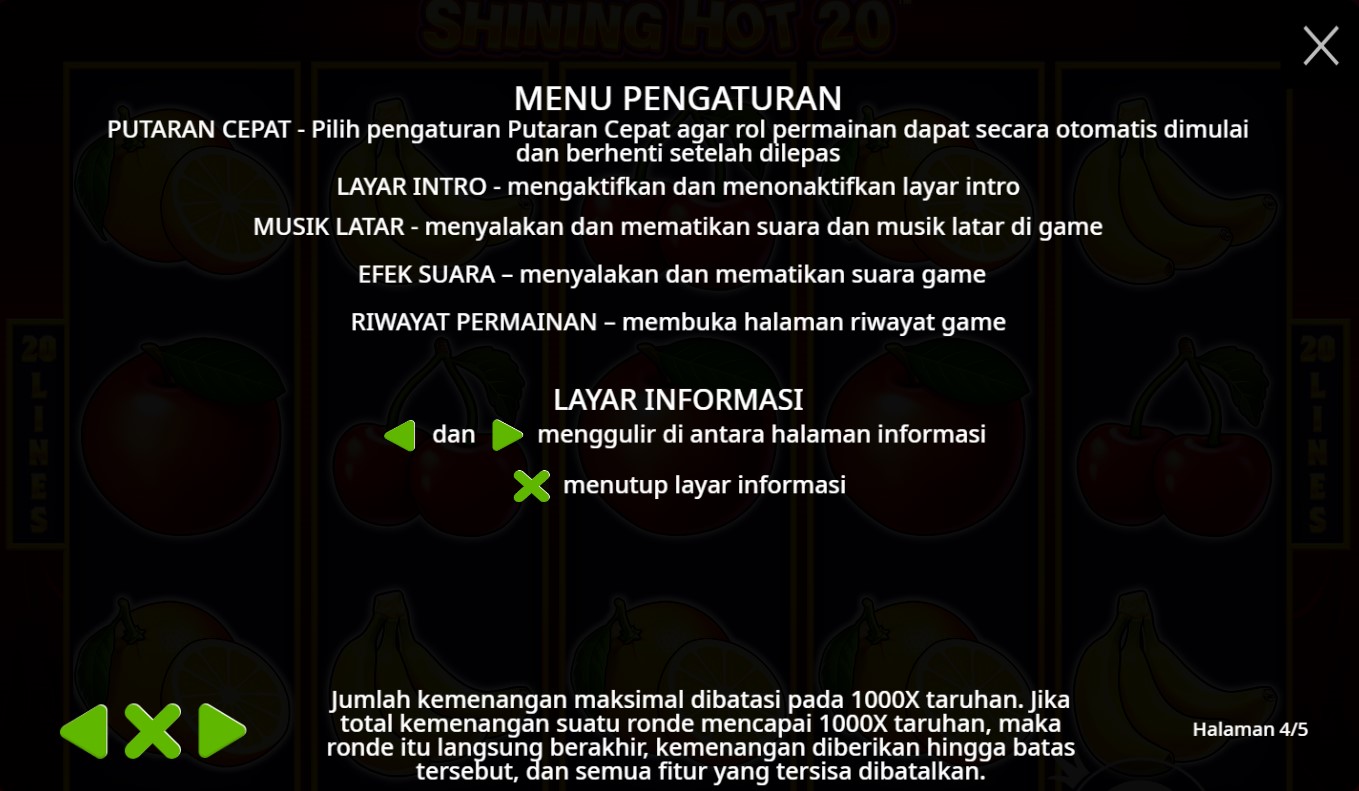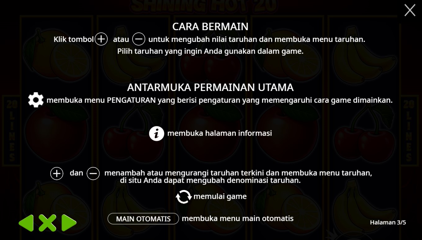 Shining Hot 20 adalah sebuah permainan slot online yang menggabungkan daya tarik klasik dengan sentuhan modern. Diciptakan oleh Pragmatic Play, slot ini mempersembahkan tema buah retro yang berwarna cerah dan menggoda, mengingatkan kita pada mesin slot tradisional yang telah menjadi favorit di kasino.