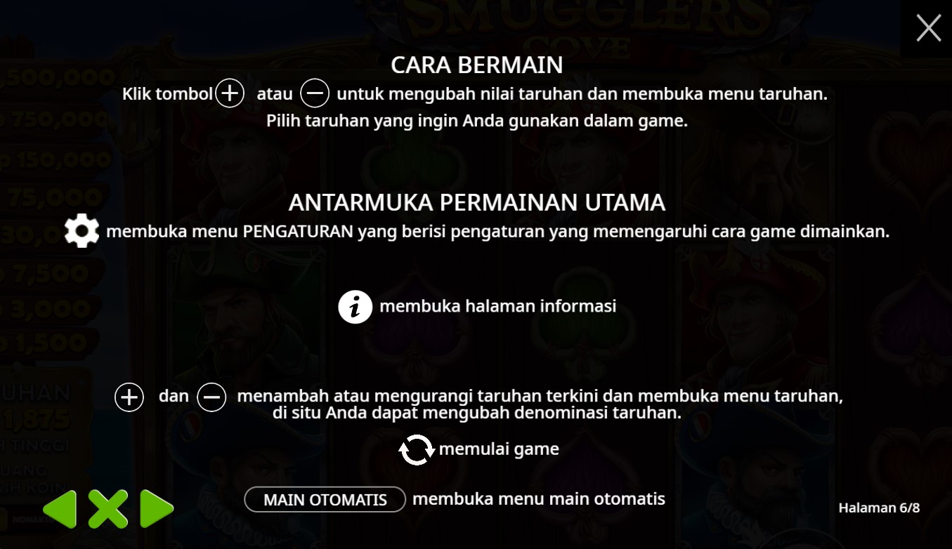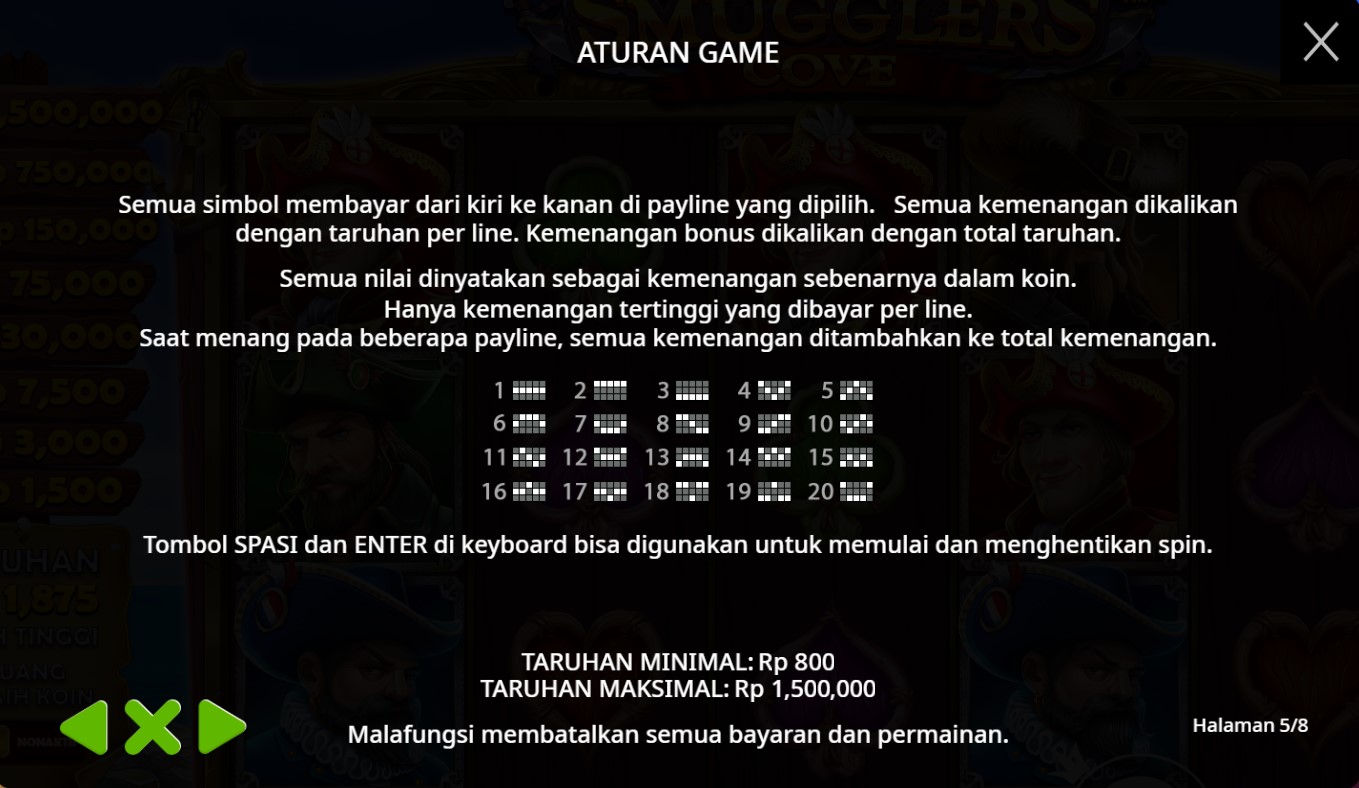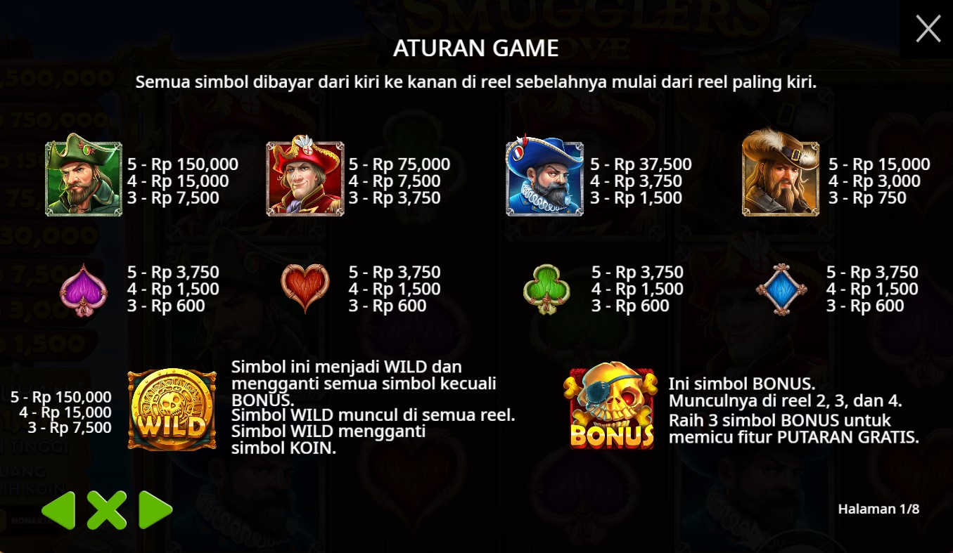 Paytable Slot Online Terpercaya Smugglers Cove adalah dunia penuh petualangan yang memikat, menantang Anda untuk menjelajahi lautan berbahaya dan menemukan harta karun tersembunyi. Dalam game ini, setiap simbol memiliki peranan penting yang akan membawa Anda menuju kemenangan besar. Simbol-simbol yang menghiasi gulungan permainan ini antara lain gambar Kapten Bajak Laut yang berani, Peti Harta Karun yang menggiurkan, dan Anggur Berharga yang menjadi simbol kemewahan. Tak ketinggalan, simbol Kompas yang membimbing Anda melalui jalur berbahaya, serta simbol Pulau Tropis yang menambah nuansa eksotis pada petualangan Anda.