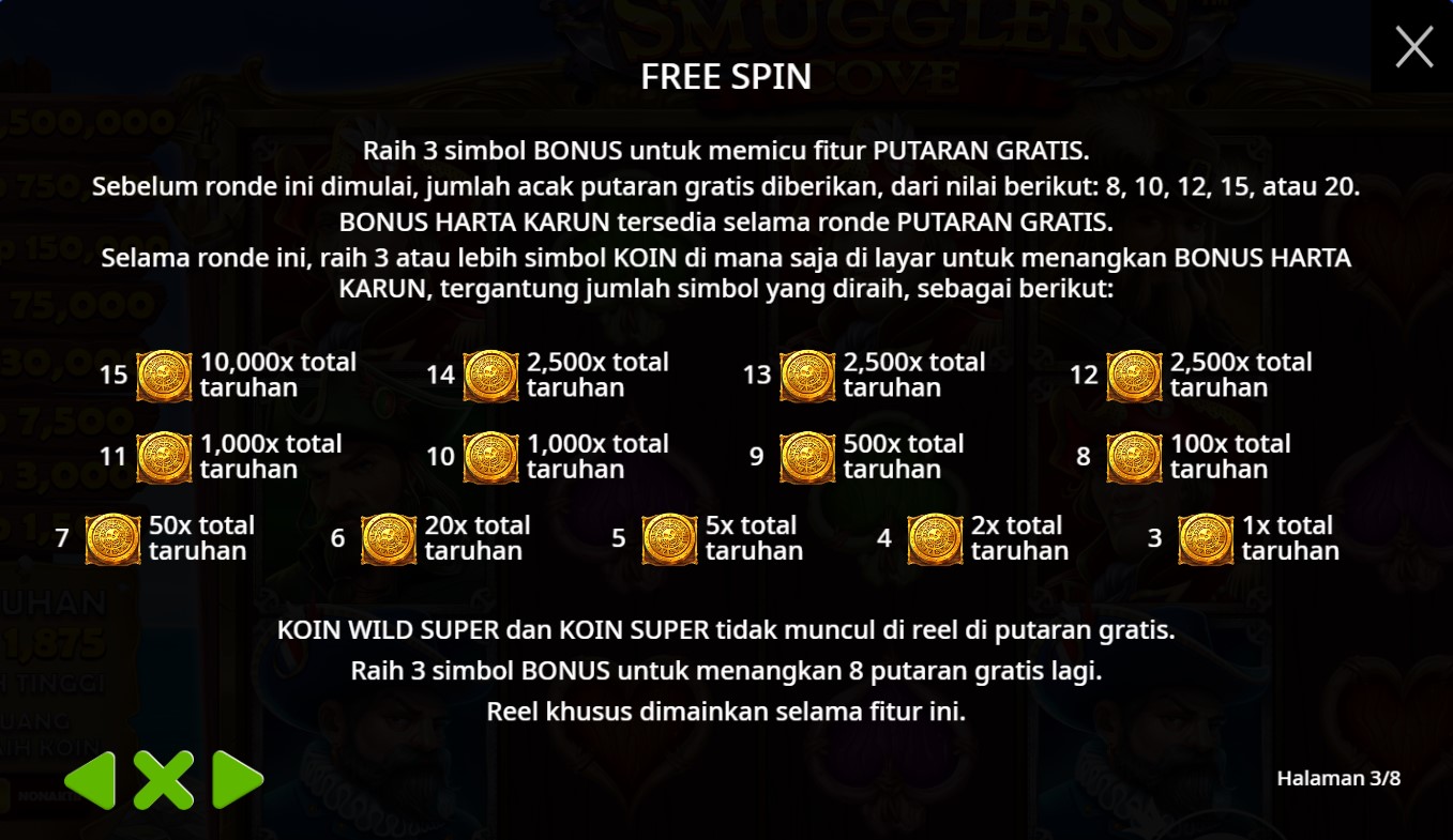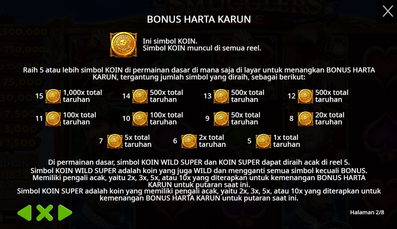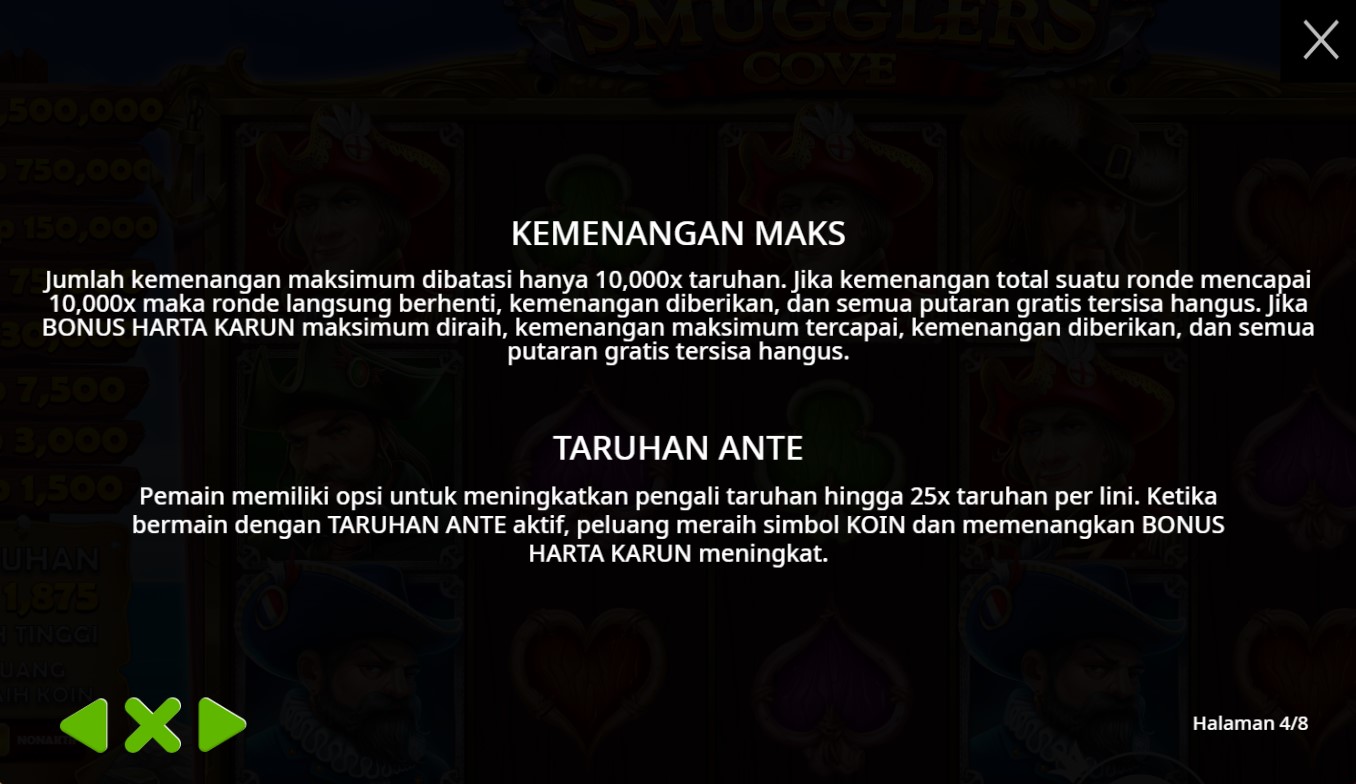 Paytable Slot Online Terpercaya Smugglers Cove adalah dunia penuh petualangan yang memikat, menantang Anda untuk menjelajahi lautan berbahaya dan menemukan harta karun tersembunyi. Dalam game ini, setiap simbol memiliki peranan penting yang akan membawa Anda menuju kemenangan besar. Simbol-simbol yang menghiasi gulungan permainan ini antara lain gambar Kapten Bajak Laut yang berani, Peti Harta Karun yang menggiurkan, dan Anggur Berharga yang menjadi simbol kemewahan. Tak ketinggalan, simbol Kompas yang membimbing Anda melalui jalur berbahaya, serta simbol Pulau Tropis yang menambah nuansa eksotis pada petualangan Anda.