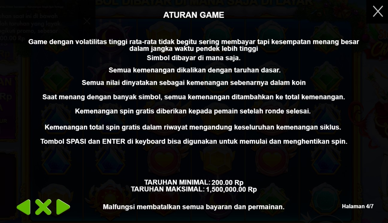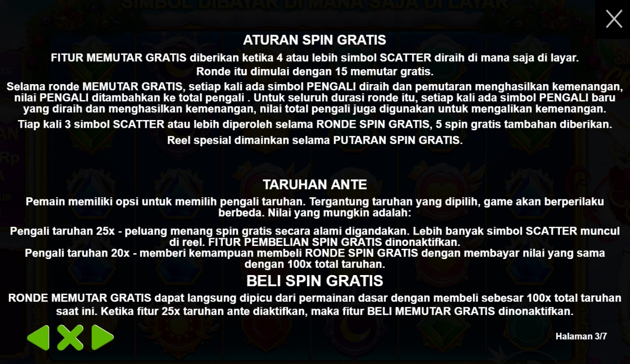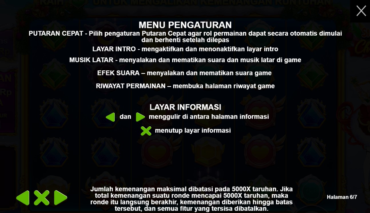 Paytable Slot Online Terpercaya Starlight Christmas menampilkan berbagai simbol yang menarik dan fitur-fitur unik yang membuat pengalaman bermain semakin seru. Simbol Wild, yang diwakili oleh logo game Starlight Christmas, dapat menggantikan simbol lain kecuali Scatter untuk membentuk kombinasi kemenangan. Sementara itu, simbol Scatter, yang berupa gambar Santa Claus, dapat memicu fitur Free Spins jika pemain berhasil mendapatkan 3 atau lebih simbol Scatter. Fitur Free Spins memberikan putaran gratis kepada pemain, dengan jumlah putaran tergantung pada jumlah simbol Scatter yang muncul. Selain itu, game ini juga memiliki fitur Respins yang dapat diaktifkan secara acak setelah putaran reguler, dimana pemain akan mendapatkan Respins dengan simbol Wild yang menempel di gulungan. Tak hanya itu, setiap kemenangan berturut-turut akan meningkatkan Win Multiplier hingga mencapai nilai tertentu, memberikan peluang besar untuk meraih kemenangan besar di Starlight Christmas.