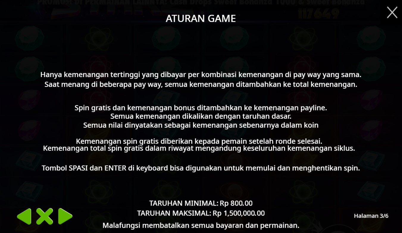 Paytable Starz Megaways adalah informasi yang menunjukkan berbagai kombinasi simbol, nilai pembayaran, dan fitur bonus yang terdapat dalam permainan slot Starz Megaways. Slot ini menggunakan mekanisme Megaways yang memungkinkan jumlah cara menang bervariasi setiap putaran, tergantung pada jumlah simbol yang muncul di setiap gulungan. Dalam paytable, Anda biasanya akan menemukan: 1. **Simbol dan Nilai Pembayaran**: Daftar simbol yang ada di permainan beserta nilai pembayaran untuk setiap kombinasi yang membentuk garis kemenangan. 2. **Fitur Spesial**: Penjelasan mengenai fitur-fitur bonus seperti Free Spins, Mega Wilds, atau menyusun simbol untuk meningkatkan peluang kemenangan. 3. **Cara Menang**: Informasi tentang cara kombinasi simbol diatur dan berapa banyak simbol yang dibutuhkan untuk mendapatkan pembayaran. 4. **RTP (Return to Player)**: Persentase teoretis dari total taruhan yang akan dikembalikan kepada pemain dalam jangka panjang. Mengakses paytable sebelum bermain sangat penting untuk memahami mekanisme permainan dan meningkatkan strategi bermain Anda.