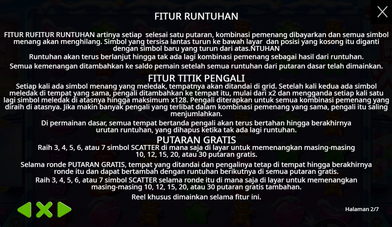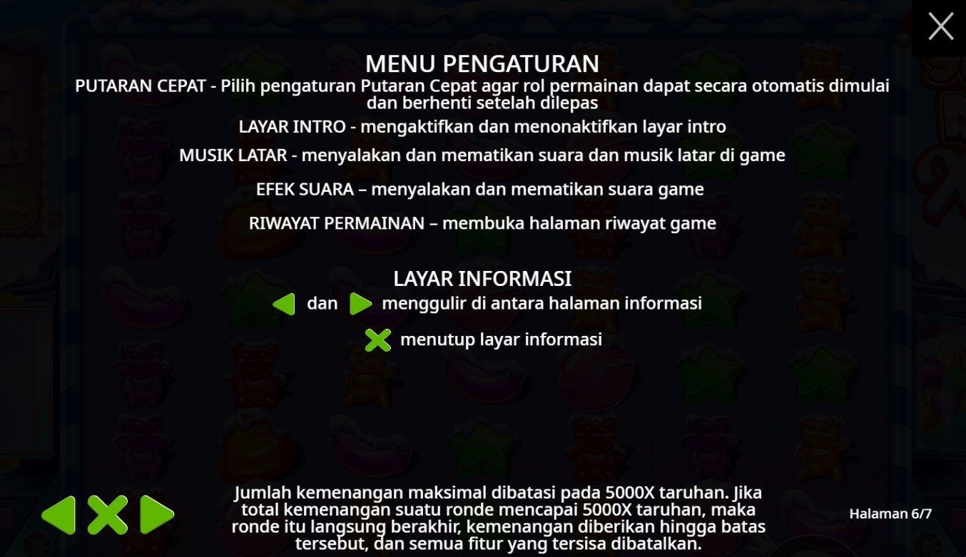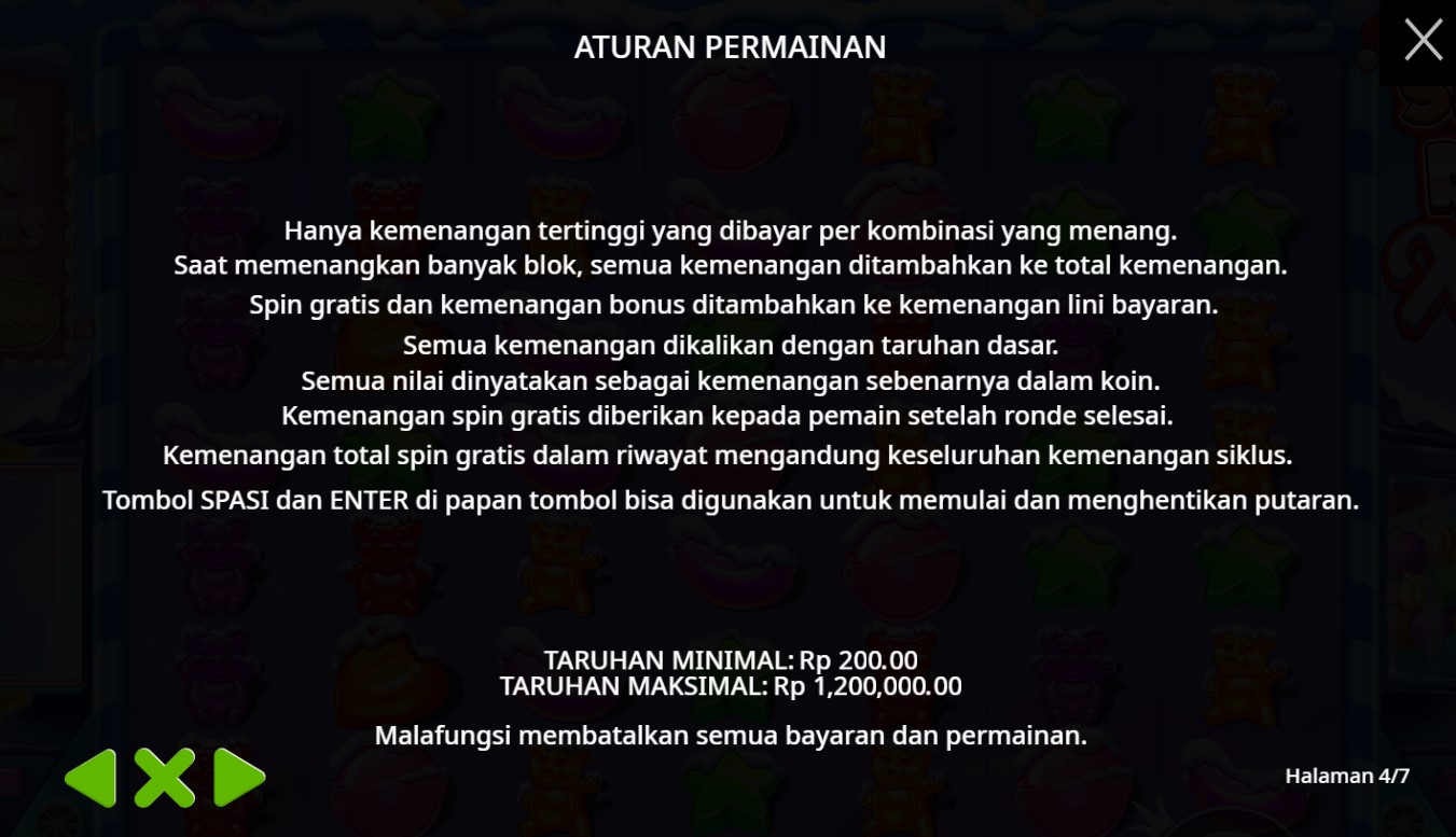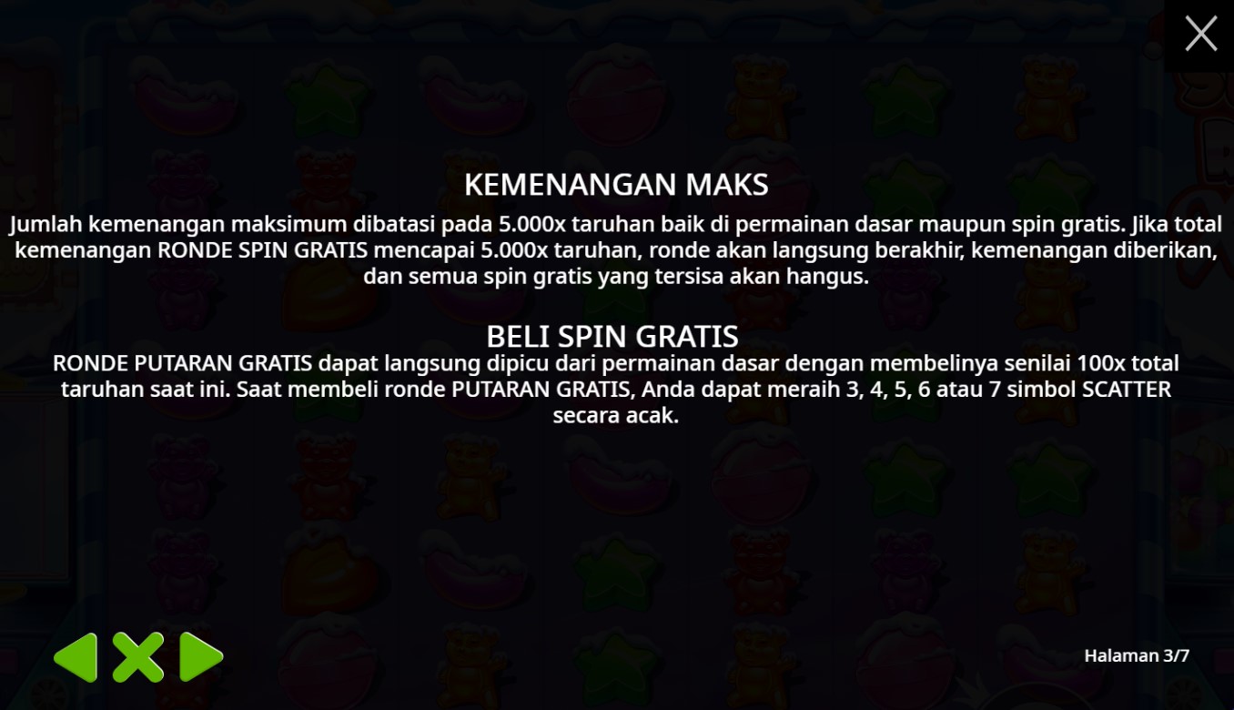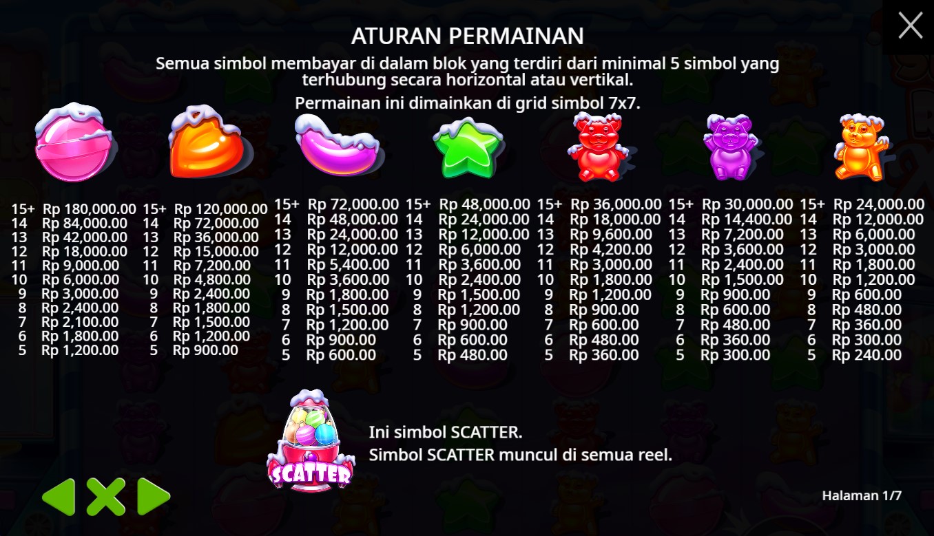 Paytable Slot Online Sugar Rush Xmas adalah panduan yang mengungkapkan simbol-simbol manis yang hadir dalam permainan ini. Dalam Sugar Rush Xmas, Anda akan menemui berbagai simbol yang menggambarkan pesona dan kegembiraan Natal. Simbol-simbol tersebut termasuk permen Natal yang berwarna-warni, permen tongkat bergaris merah dan putih, permen jahe yang menggugah selera, serta berbagai simbol lain yang menggambarkan makanan penutup lezat. Setiap simbol memiliki nilai yang berbeda dan dapat membentuk kombinasi-kombinasi menang yang menguntungkan.
