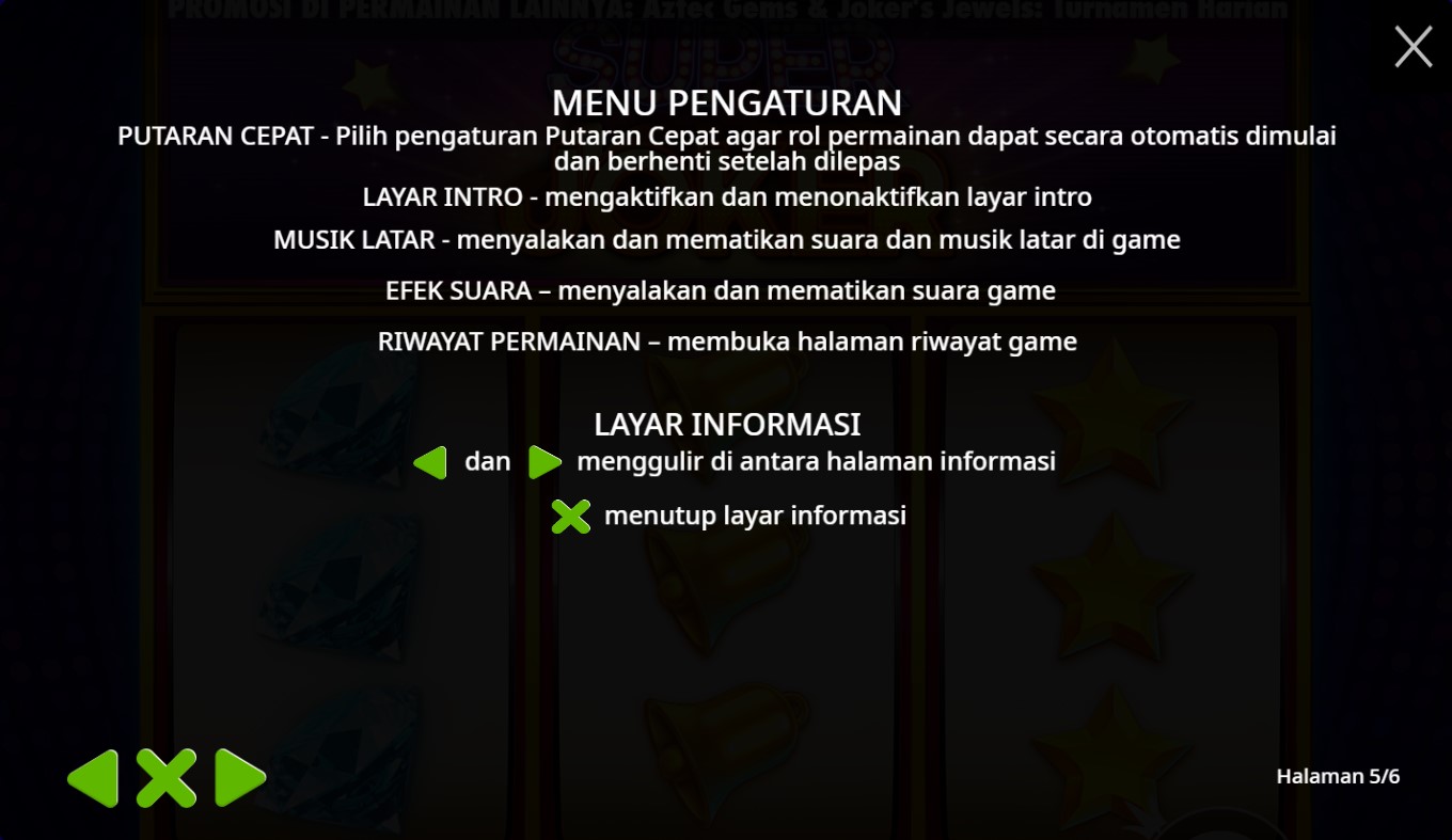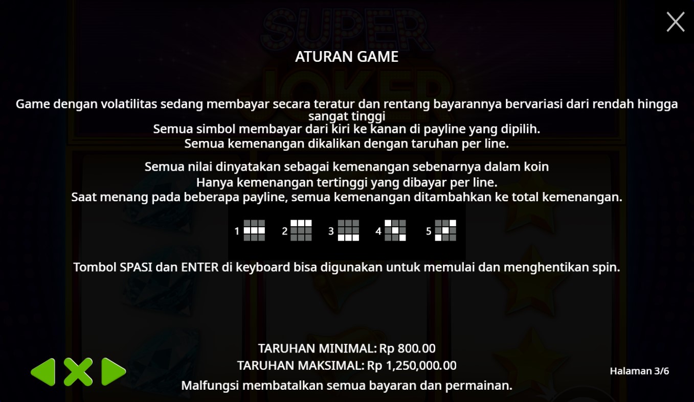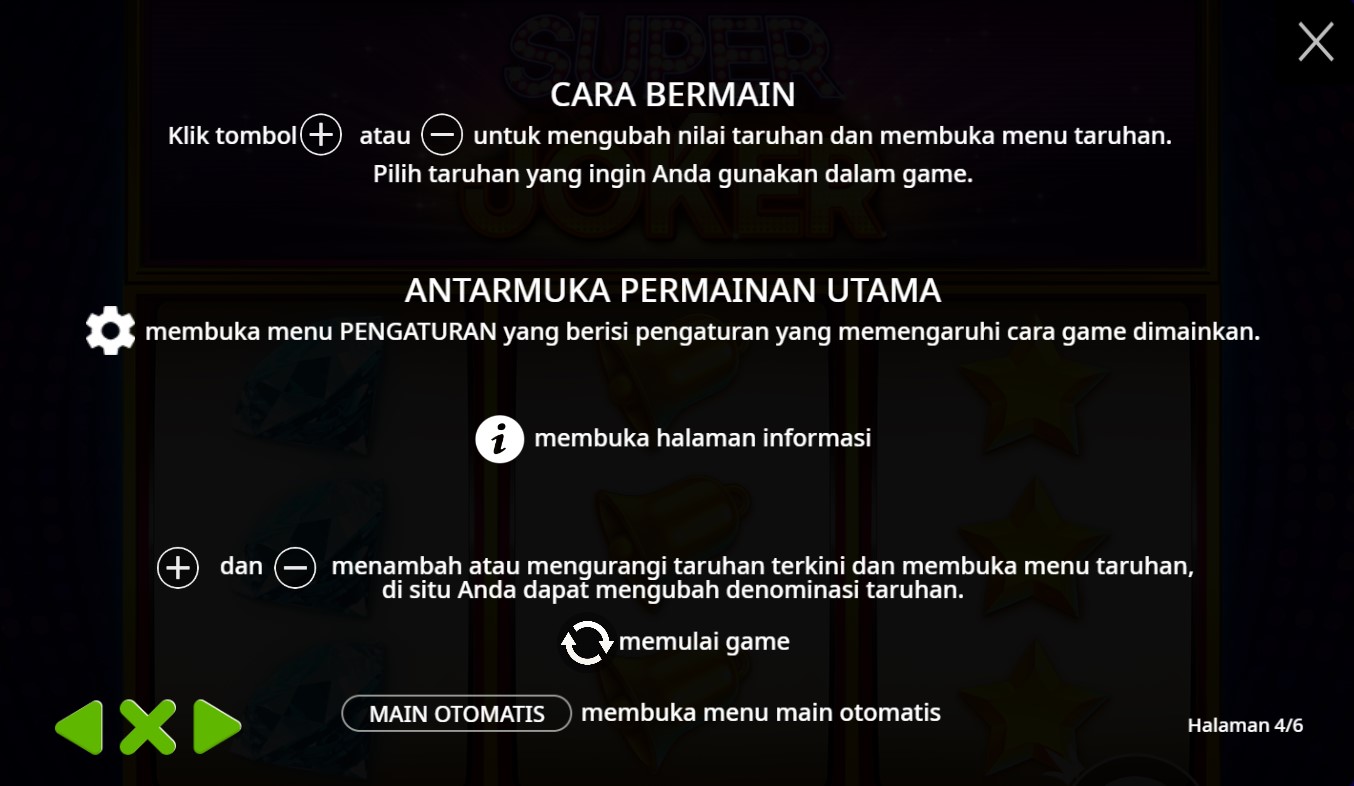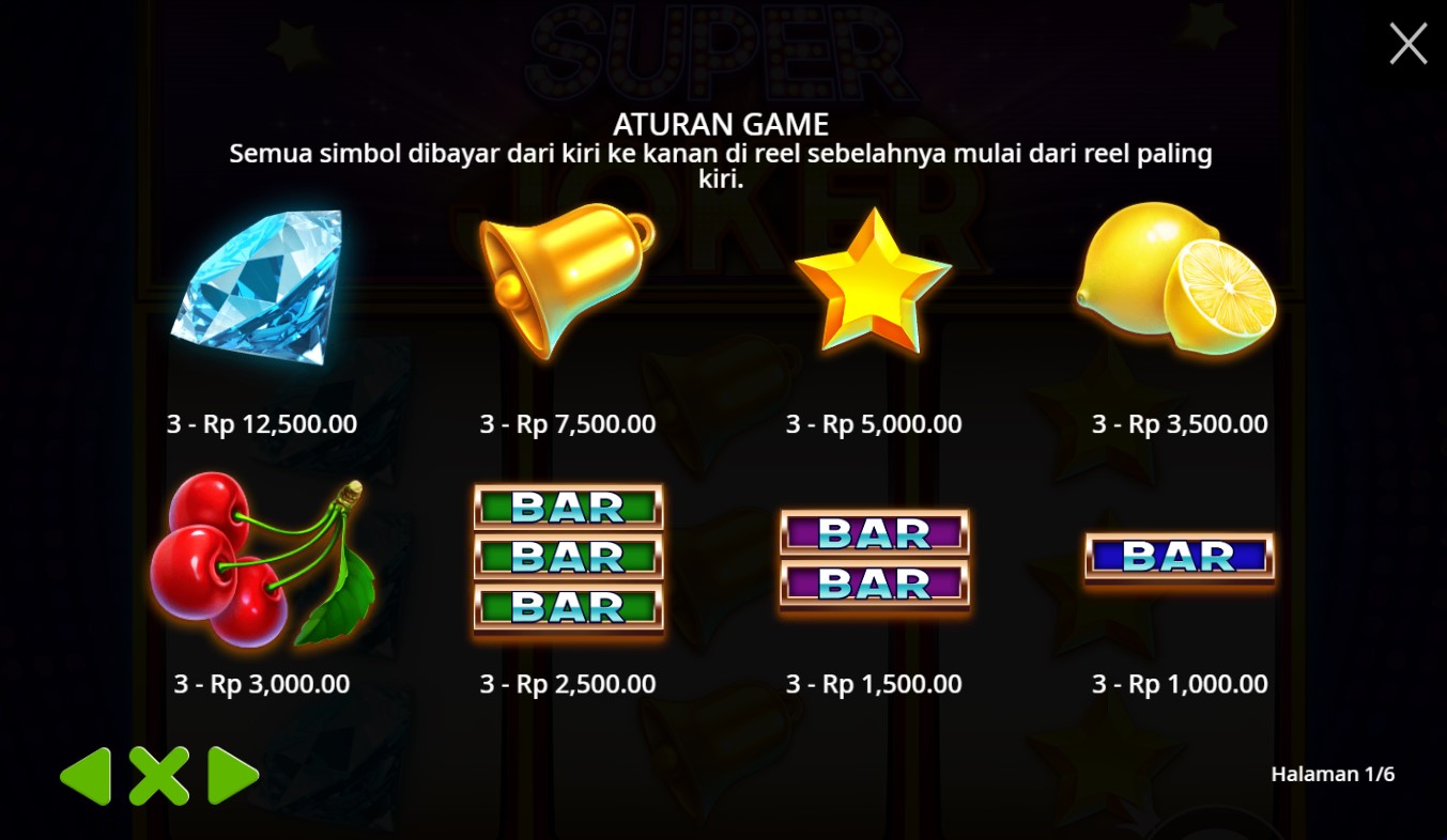 Paytable Slot Online Terpercaya Super Joker adalah panduan lengkap untuk meraih kemenangan dalam permainan yang mengasyikan ini. Dikenal karena grafisnya yang cerah dan suara yang menggugah semangat, Super Joker menawarkan pengalaman bermain yang tidak terlupakan. Dalam permainan ini, Anda akan menemukan berbagai simbol menarik yang masing-masing memiliki nilai dan fungsi unik. Simbol-simbol tersebut antara lain adalah Joker yang menjadi simbol liar, serta simbol buah-buahan klasik seperti ceri, lemon, jeruk, dan anggur. Tak ketinggalan, terdapat juga simbol bintang dan angka tujuh yang dikenal sebagai simbol keberuntungan. Setiap simbol memiliki potensi untuk memberikan kombinasi yang menguntungkan, dan dengan memahami paytable, Anda bisa meningkatkan peluang untuk menang besar.