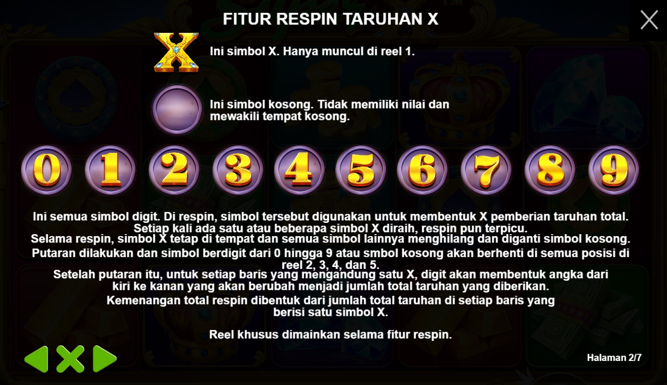 Super X adalah permainan slot online yang menawarkan pengalaman bermain yang seru dan mengasyikkan. Dalam game ini, terdapat berbagai simbol yang menarik dan mengasyikkan untuk ditemui dalam setiap putaran. Beberapa simbol yang ada pada Super X antara lain: - Simbol Wild: Simbol ini dapat menggantikan simbol lain untuk membentuk kombinasi kemenangan yang menguntungkan. - Simbol Scatter: Simbol Scatter dapat memicu fitur bonus seperti Free Spins jika muncul dalam jumlah tertentu. - Simbol Bonus: Simbol Bonus memberikan kesempatan untuk memenangkan hadiah tambahan atau memasuki babak bonus. - Simbol Jackpot: Simbol Jackpot adalah simbol paling bernilai yang dapat memberikan kemenangan besar kepada pemain. Dengan kombinasi simbol-simbol yang beragam dan fitur bonus yang menarik, Super X menjadi pilihan utama bagi para pecinta slot di Indonesia. Jelajahi paytable Super X sekarang dan rasakan keseruan serta keuntungan dalam setiap putaran!