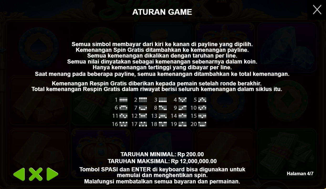 Paytable Slot Online Terpercaya Super X