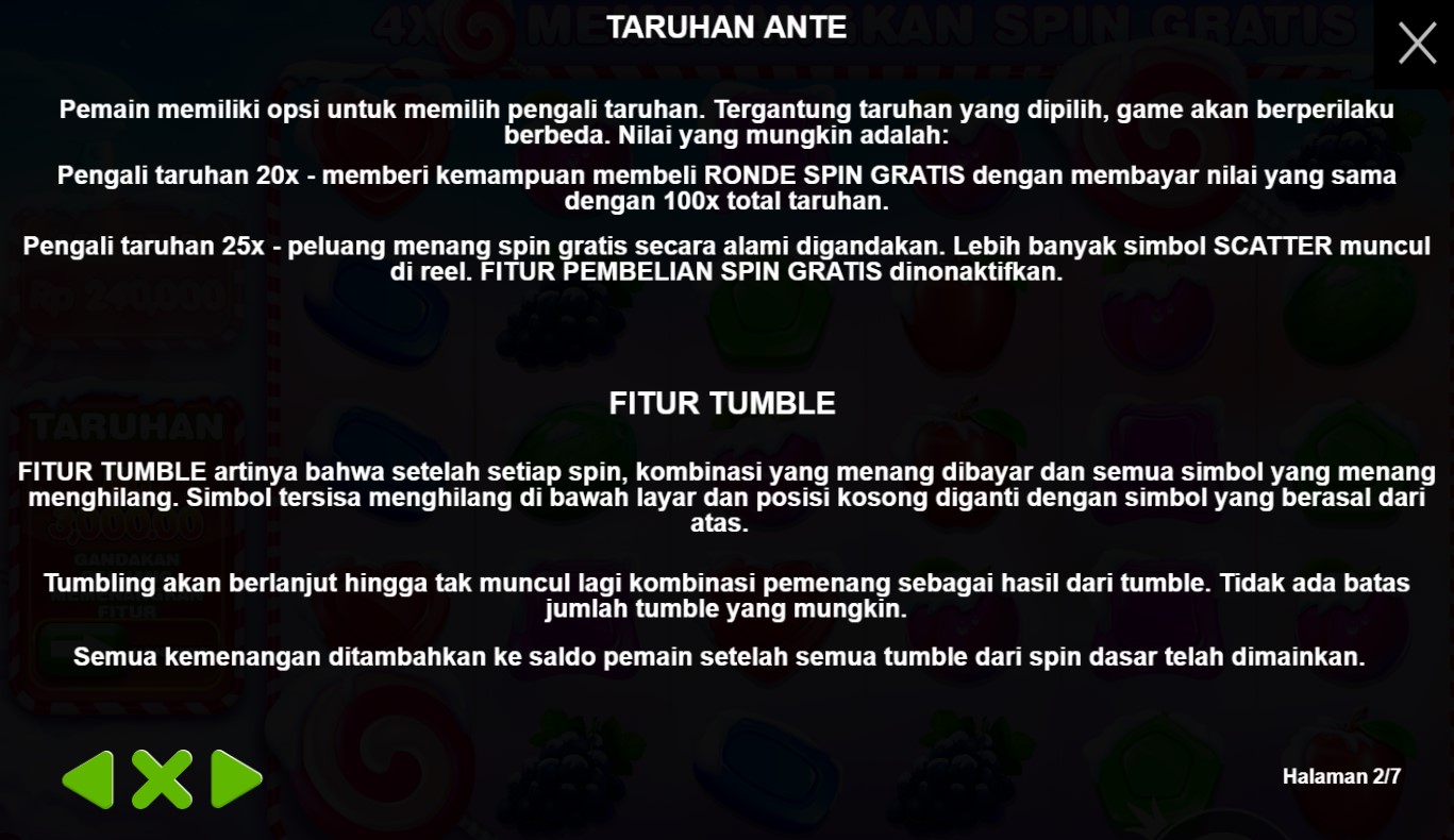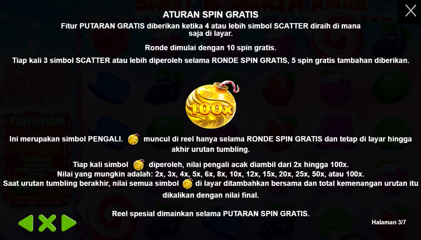 Paytable Slot Online Sweet Bonanza Xmas adalah panduan yang mengungkapkan simbol-simbol manis yang hadir dalam permainan ini. Dalam Sweet Bonanza Xmas, Anda akan menemui berbagai simbol yang menggambarkan kelezatan dan pesona Natal. Simbol-simbol tersebut mencakup berbagai jenis buah-buahan yang terhias dengan dekorasi Natal, seperti stroberi, anggur, apel, pir, serta permen-permen warna-warni yang menggemaskan. Setiap simbol memiliki nilai yang berbeda dan dapat membentuk kombinasi-kombinasi menang yang menguntungkan. Selain itu, permainan ini dilengkapi dengan fitur-fitur bonus yang menarik, seperti fitur Tumble yang memungkinkan simbol-simbol baru jatuh setelah setiap kemenangan, serta fitur Free Spins yang memberikan kesempatan untuk memenangkan putaran gratis dengan pembayaran yang lebih tinggi.