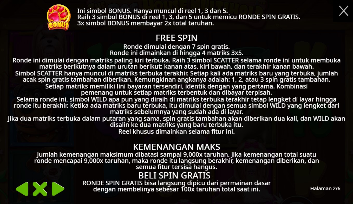 Paytable Slot Online The Dog House Multihold adalah salah satu yang paling menarik di antara game-game slot online terpercaya dari Pragmatic Play. Dengan konsep tematik yang unik dan fitur-fitur inovatif, pemain akan disuguhkan pengalaman bermain yang menyenangkan dan memikat. Simbol-simbol yang muncul pada The Dog House Multihold terdiri dari berbagai ikon tematik yang merepresentasikan suasana rumah hewan peliharaan. Mulai dari anjing, kucing, burung, dan hewan-hewan lucu lainnya, hingga simbol-simbol kartu remi yang memberikan pembayaran standar. Kehadiran ikon-ikon tematik yang variatif ini memberikan kesan visual yang eye-catching dan selaras dengan tema permainan.