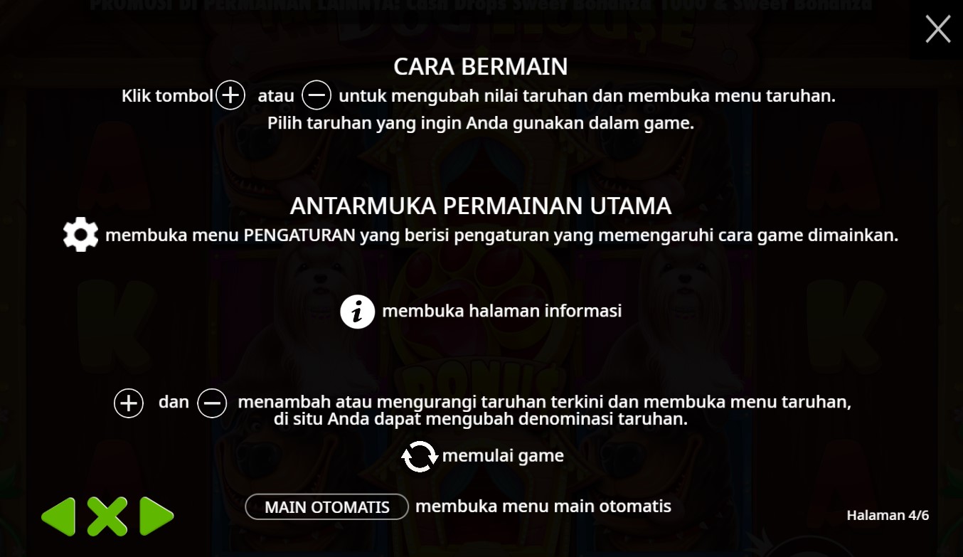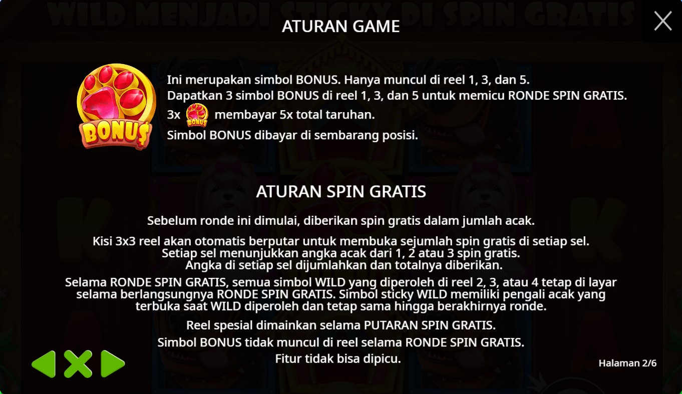 Paytable Slot Online The Dog House adalah salah satu yang paling menarik di antara game-game slot online terpercaya dari Pragmatic Play. Dengan tema rumah tangga yang ceria dan menggemaskan, pemain akan disuguhkan pengalaman bermain yang unik dan menyenangkan. Simbol-simbol yang muncul pada The Dog House terdiri dari berbagai ikon tematik yang merepresentasikan kehidupan di dalam rumah. Mulai dari anjing, kucing, dan hamster yang lucu, hingga mainan, makanan hewan, dan peralatan rumah tangga. Simbol-simbol ini dilengkapi dengan ikon karakter anjing yang menjadi maskot utama, menambah kesan visual yang kuat dan menarik.