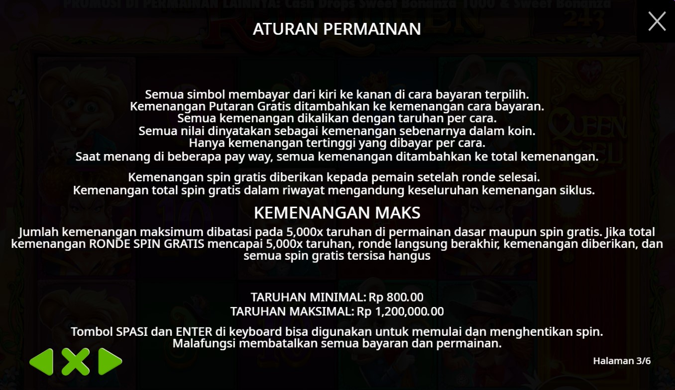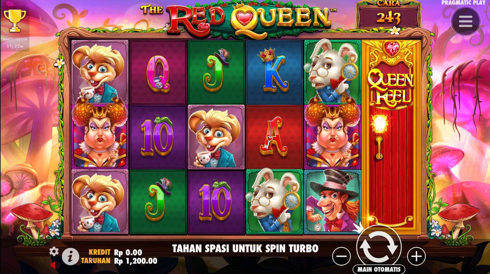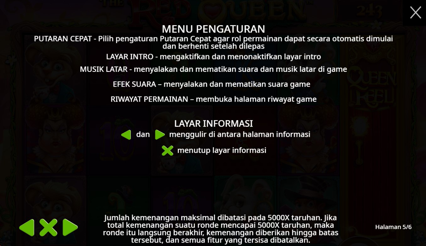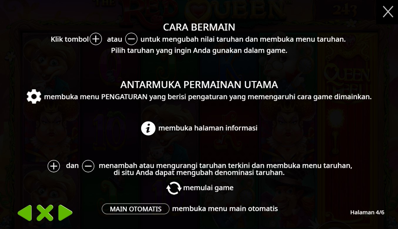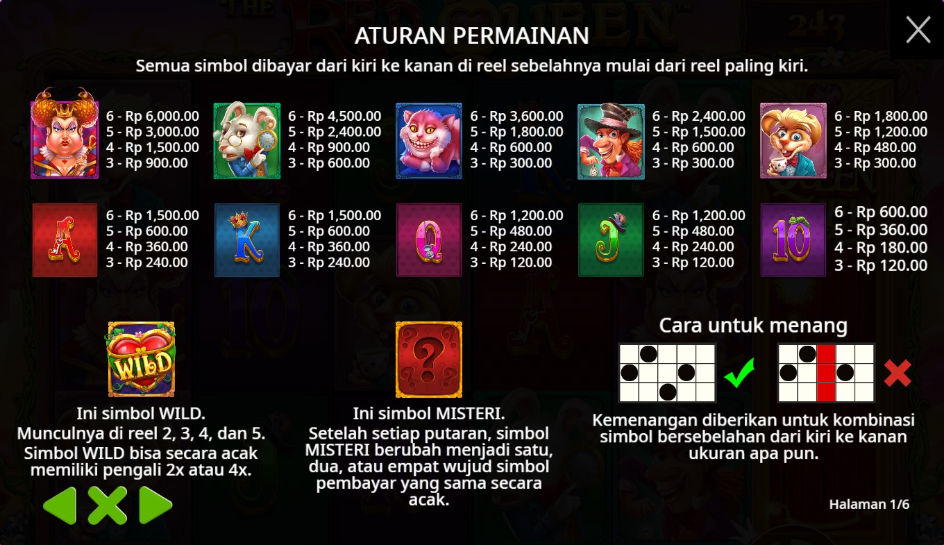 Paytable Slot Online Red Queen adalah panduan penting bagi para pemain yang ingin meraih keberuntungan dalam permainan yang penuh warna dan imajinasi ini. Mengusung tema fantastis dari dunia Alice in Wonderland, game ini menawarkan beragam simbol menarik yang meningkatkan pengalaman bermain. Di antara simbol-simbol tersebut, terdapat simbol Raja dan Ratu, yang mewakili kekuasaan dan keanggunan; kartu remi (A, K, Q, J) yang memberikan nilai dasar, serta simbol bunga yang berfungsi sebagai bonus. Tak ketinggalan, simbol Catur dan Jam Pasir membawa elemen strategi, sementara simbol Wild dan Scatter membuka peluang hadiah yang lebih besar. Dengan mengetahui lebih dalam tentang paytable, pemain bisa merancang strategi yang tepat, memaksimalkan kemenangan, dan menikmati setiap putaran dengan rasa percaya diri.