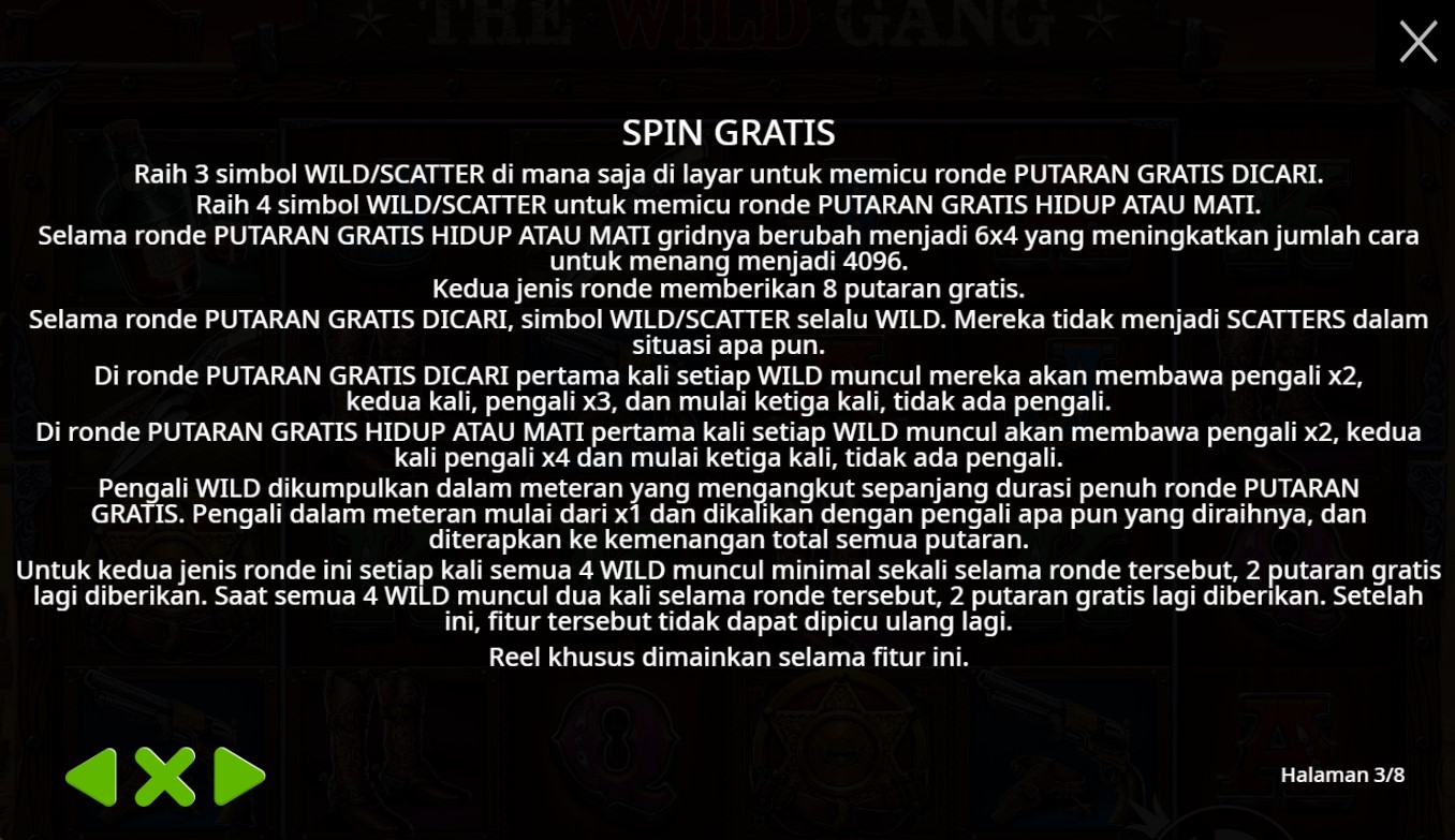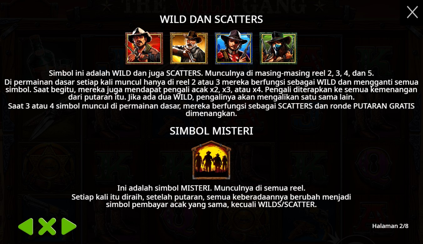 Paytable Slot Online The Wild Gang adalah simbol-simbol khas Wild Gang yang menarik dan menghibur. Simbol-simbol tersebut mencakup karakter-karakter liar, simbol bonus yang memicu putaran gratis, serta simbol kemenangan tinggi yang dapat membawa Anda pada hadiah-hadiah besar. Setiap simbol memiliki nilai yang berbeda, menambah keseruan dalam setiap putaran permainan. Dengan grafis yang memukau dan fitur-fitur bonus yang menarik, The Wild Gang menawarkan pengalaman bermain yang seru dan mengasyikkan. Bergabunglah sekarang dan nikmati sensasi petualangan di slot online terpercaya ini. Raih kemenangan besar dan jadilah bagian dari Wild Gang yang penuh kejutan!