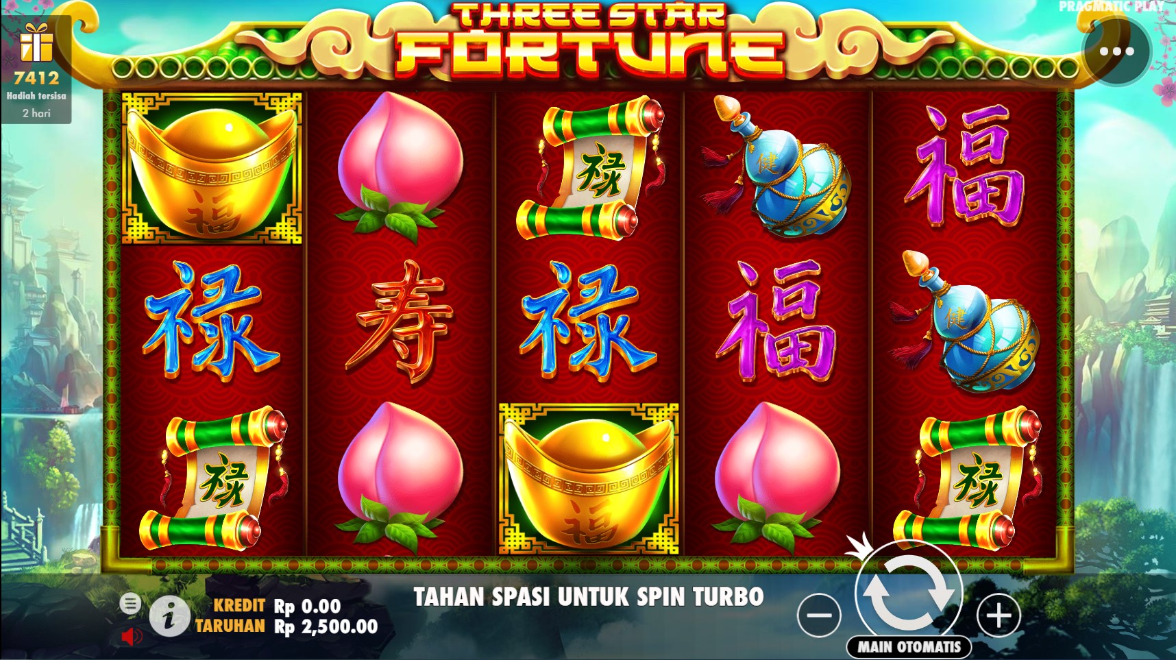 Three Star Fortune adalah perjalanan menuju kekayaan dalam dunia slot online! Dikembangkan oleh Pragmatic Play, slot online terpercaya ini menawarkan pengalaman yang unik dengan tema keberuntungan dan bintang yang memikat. Dalam permainan ini, Anda akan menemukan keunggulan yang menarik. Simbol-simbol yang ada pada game ini meliputi bintang-bintang yang berkilauan, simbol-simbol klasik seperti buah-buahan yang menggoda, dan simbol Wild yang mempesona.