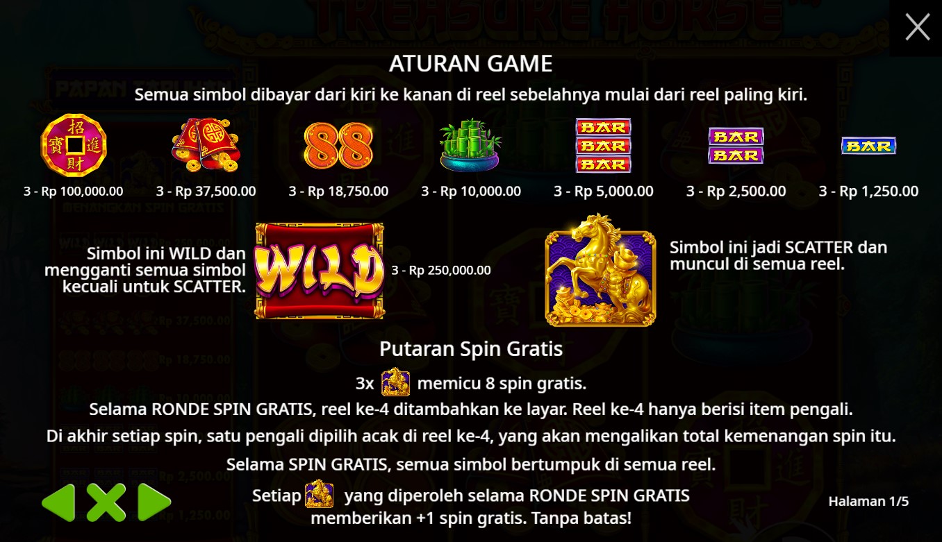Paytable Slot Online Terpercaya Treasure Horse