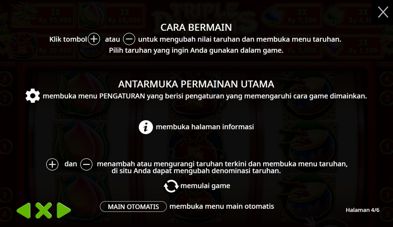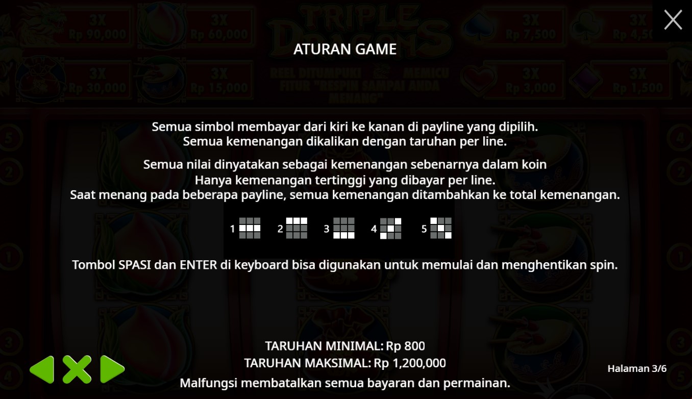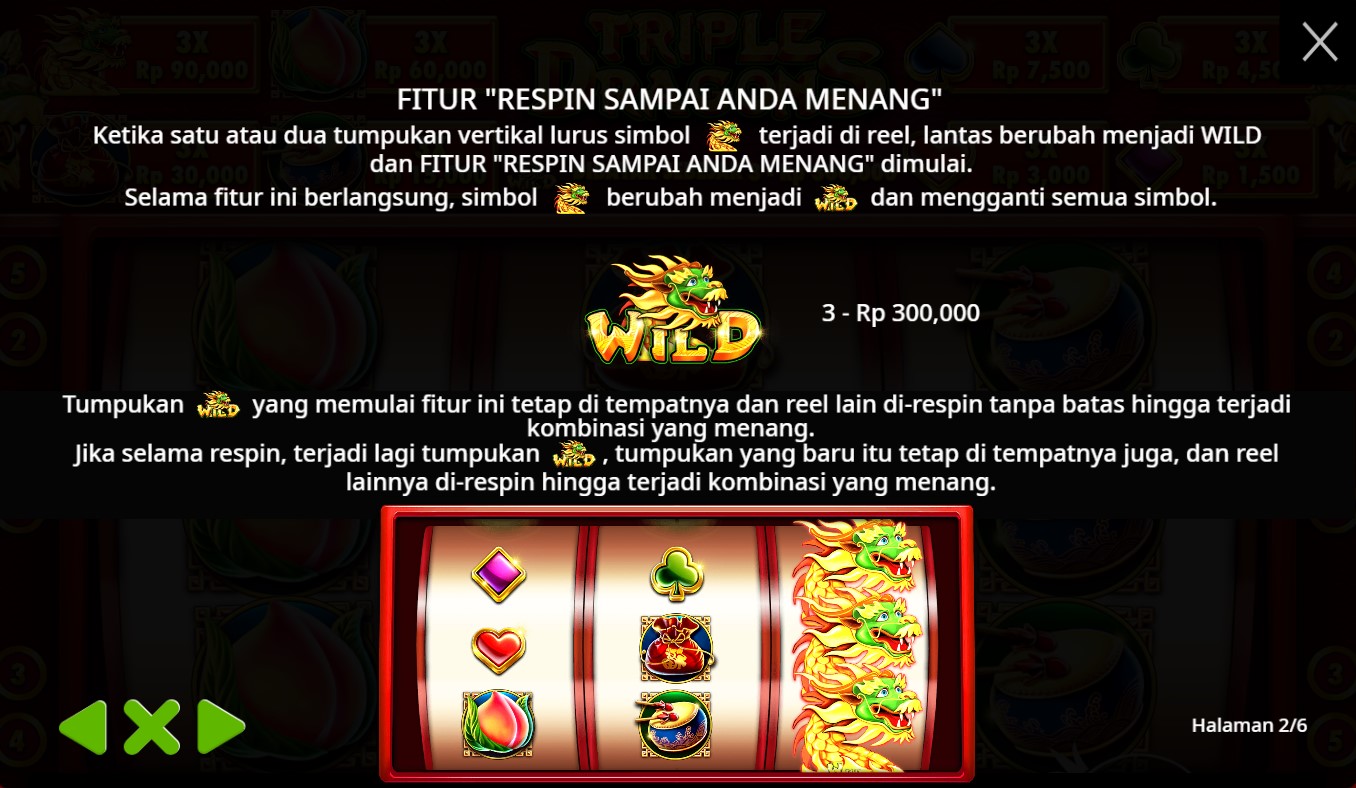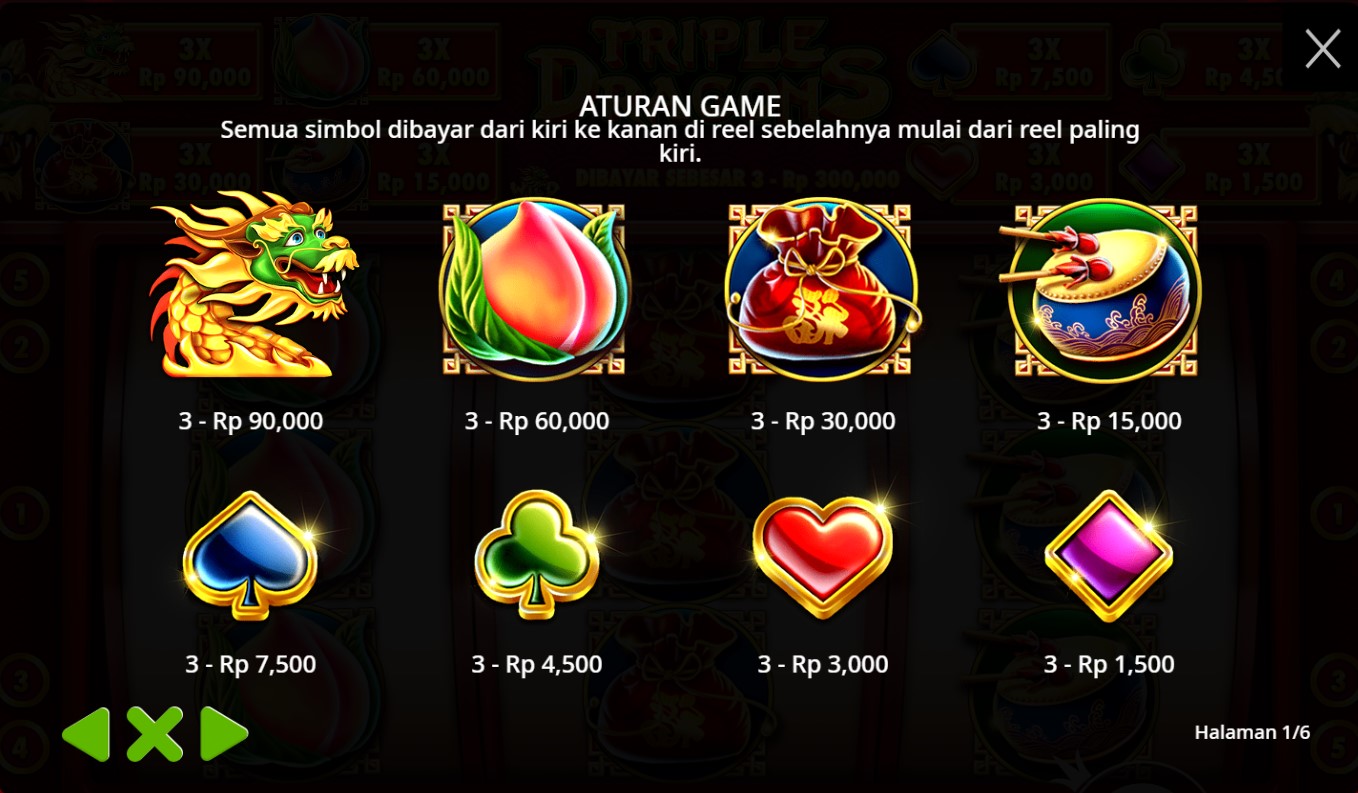 Paytable Slot Online Triple Dragons adalah permainan yang memukau pecinta slot online dengan tema naga yang mempesona. Dikembangkan oleh Pragmatic Play, Triple Dragons menyajikan simbol-simbol yang terinspirasi dari mitologi dan kekuatan naga, siap membawa pemain ke dalam petualangan yang menarik. Pada game ini, pemain akan menemukan simbol-simbol utama berupa Tiga Naga Emas, Kristal Biru, Bola Kristal, dan Kartu Poker dari Ace hingga King. Simbol Tiga Naga Emas menjadi simbol Wild yang dapat menggantikan semua simbol lainnya untuk membentuk kombinasi pemenang.