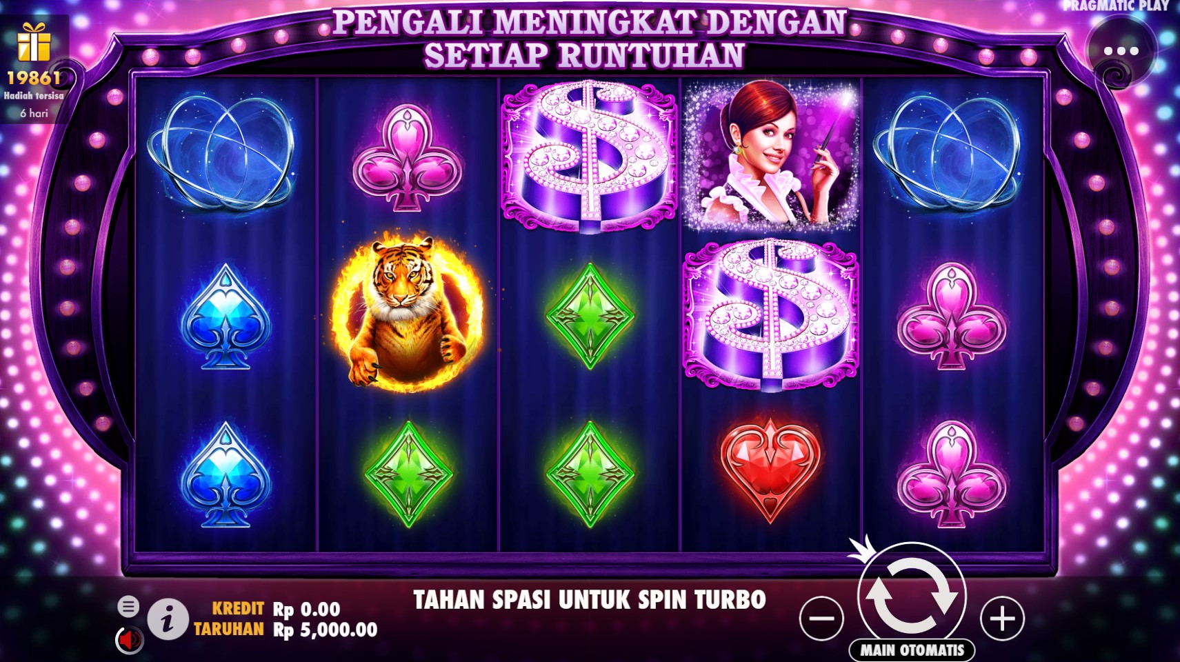 Vegas Magic adalah pesona ajaib yang memikat dalam dunia slot online! Dikembangkan oleh Pragmatic Play, slot online terpercaya ini membawa Anda ke dalam gemerlap dan kegembiraan kota hiburan terkenal, Las Vegas. Dalam permainan ini, Anda akan terpesona oleh kombinasi simbol-simbol misterius dan fitur-fitur bonus yang memukau. Dengan gulungan yang dipenuhi dengan simbol-simbol magis, Vegas Magic memberikan kesempatan luar biasa untuk meraih kemenangan besar.