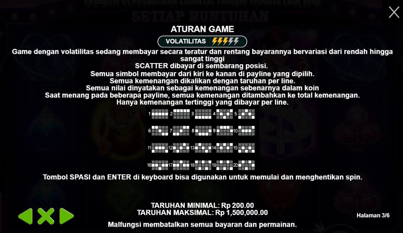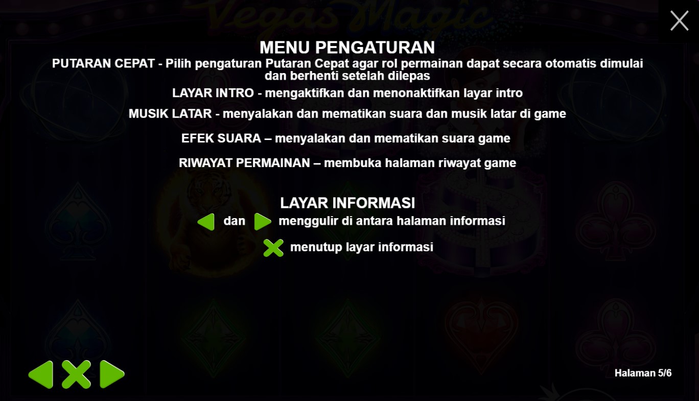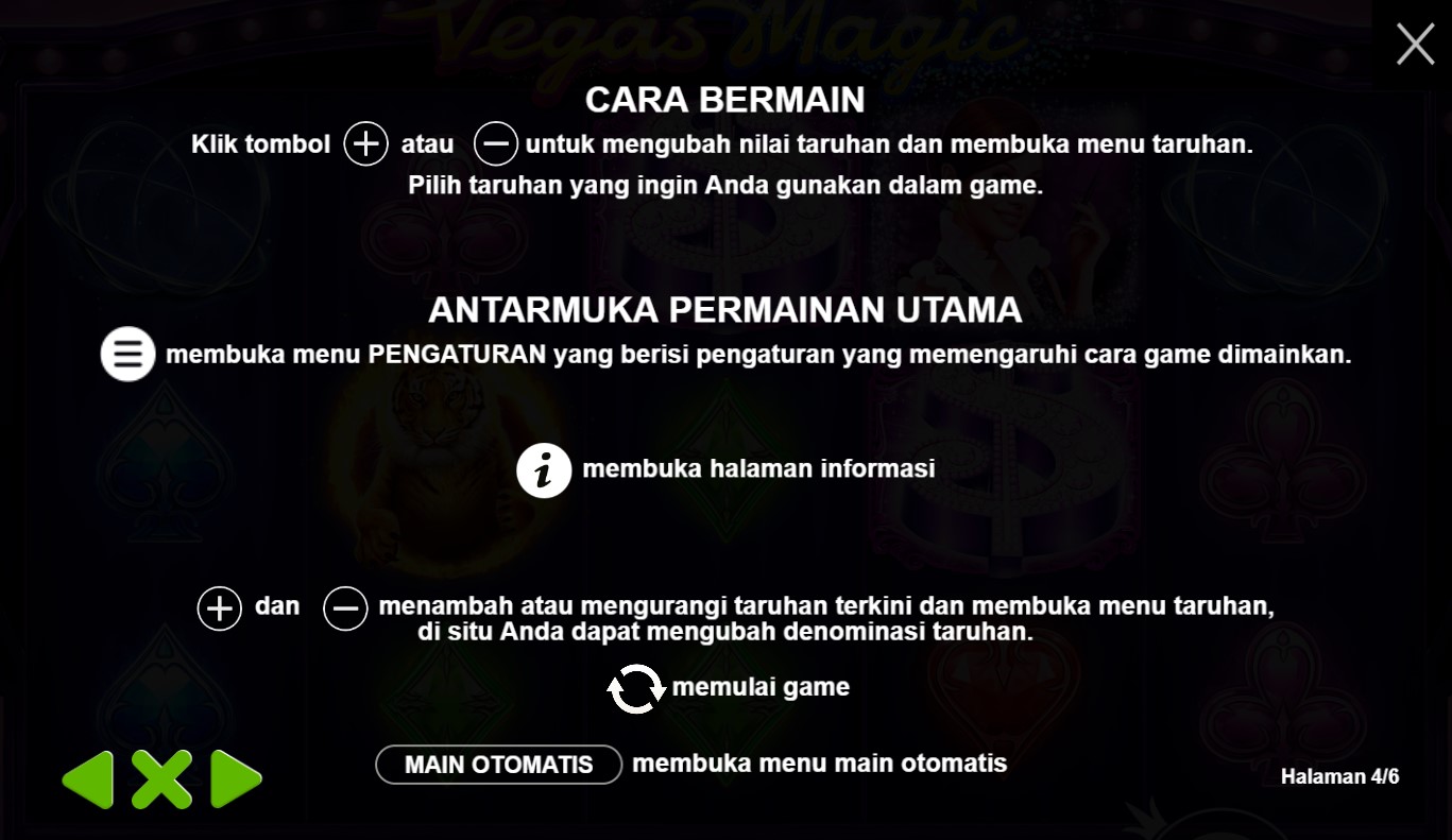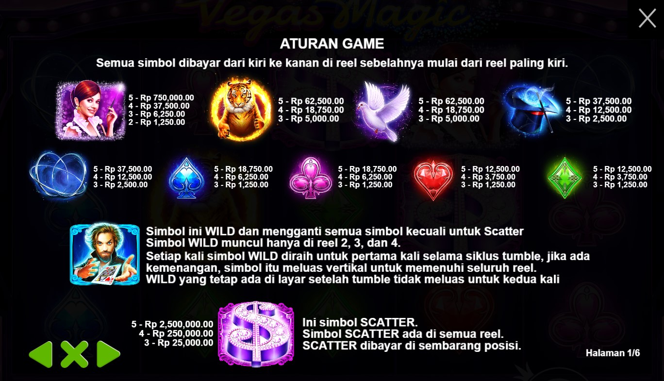 Paytable Slot Online Vegas Magic adalah panduan keajaiban dalam dunia slot online yang terpercaya! Dalam permainan ini, Anda akan menemukan serangkaian simbol yang memikat. Simbol-simbol yang ada pada game ini termasuk simbol Wild yang mempesona, simbol Mystery Box yang misterius, serta simbol-simbol klasik seperti simbol kartu remi yang berkilauan. Setiap simbol memiliki nilai dan kombinasi pemenang yang berbeda, membawa Anda menuju kemenangan yang memikat di panggung Vegas Magic. Dengan kombinasi simbol yang menarik ini, Anda akan merasakan pesona dan keajaiban setiap kali memutar gulungan. Ikuti panduan dalam paytable ini dan saksikan bagaimana Vegas Magic membawa Anda ke dalam dunia magis dengan kemenangan yang luar biasa!
