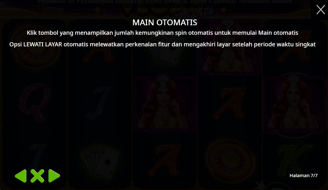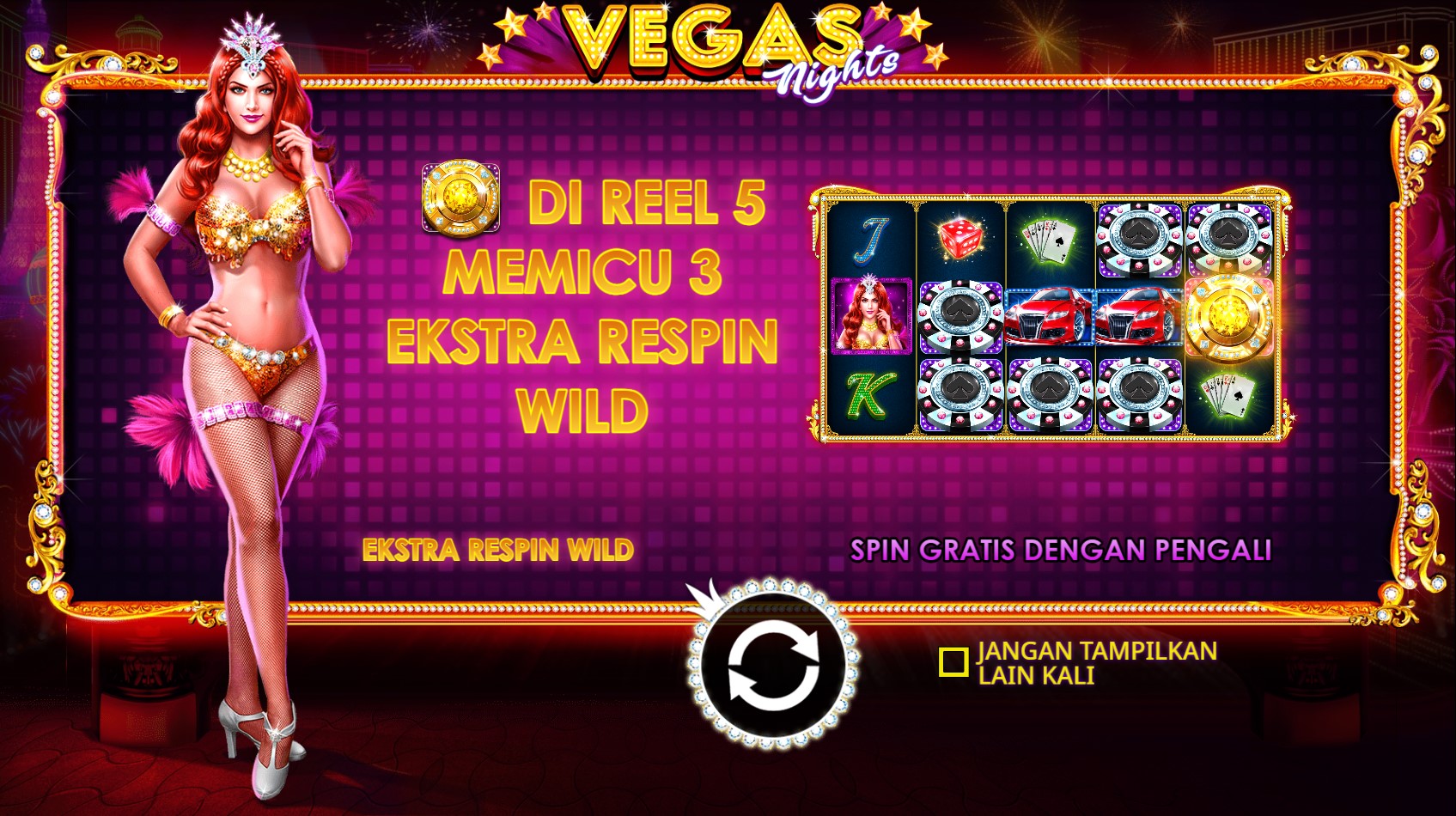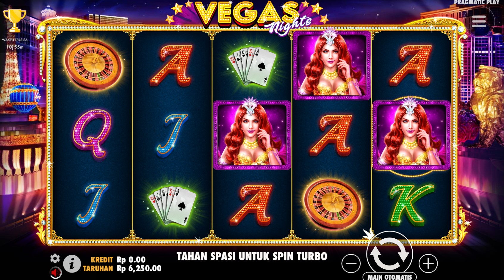 Vegas Nights adalah salah satu permainan slot online yang dikembangkan oleh Pragmatic Play. Permainan ini mengambil tema kasino yang meriah, mengingatkan pada suasana malam di Las Vegas yang kinclong dan penuh kehidupan. Dengan grafis yang menarik dan efek suara yang menggugah semangat, Vegas Nights menawarkan berbagai simbol yang berkaitan dengan perjudian, seperti chip poker, koin emas, dan minuman khas kasino.