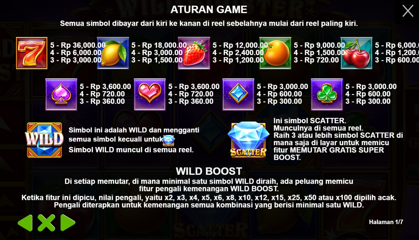 Paytable Slot Online Wild Booster adalah panduan menuju kejayaan dengan hadiah-hadiah yang menggelegar! Sebagai salah satu slot online terpercaya, Wild Booster memberikan pemain kesempatan untuk menggali kekayaan yang menakjubkan melalui kombinasi simbol-simbol yang menarik. Dalam paytable ini, Anda akan menemukan potensi kemenangan yang luar biasa, fitur-fitur bonus yang mempesona, dan keajaiban-keajaiban lain yang menanti di setiap putaran gulungan.
