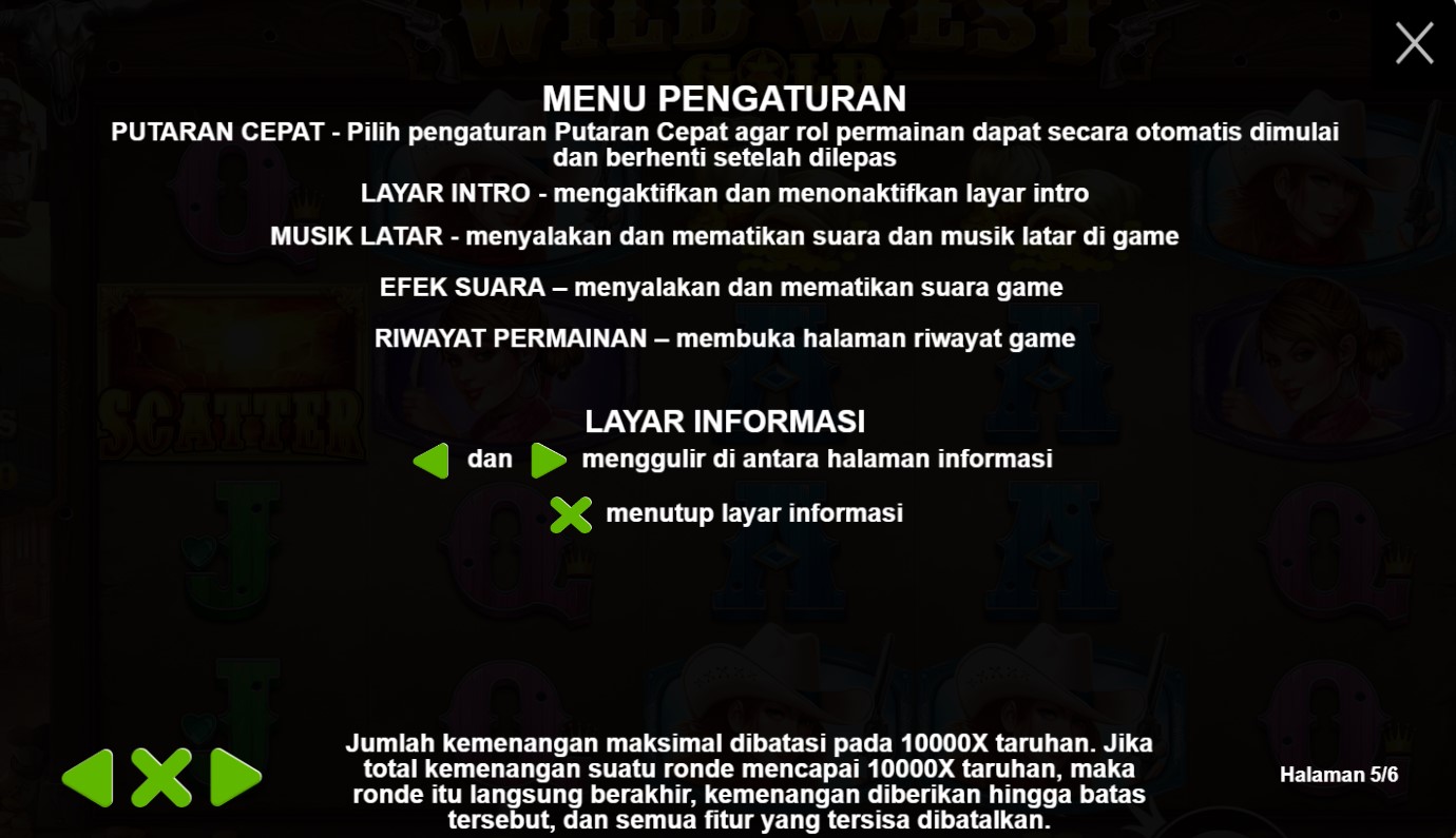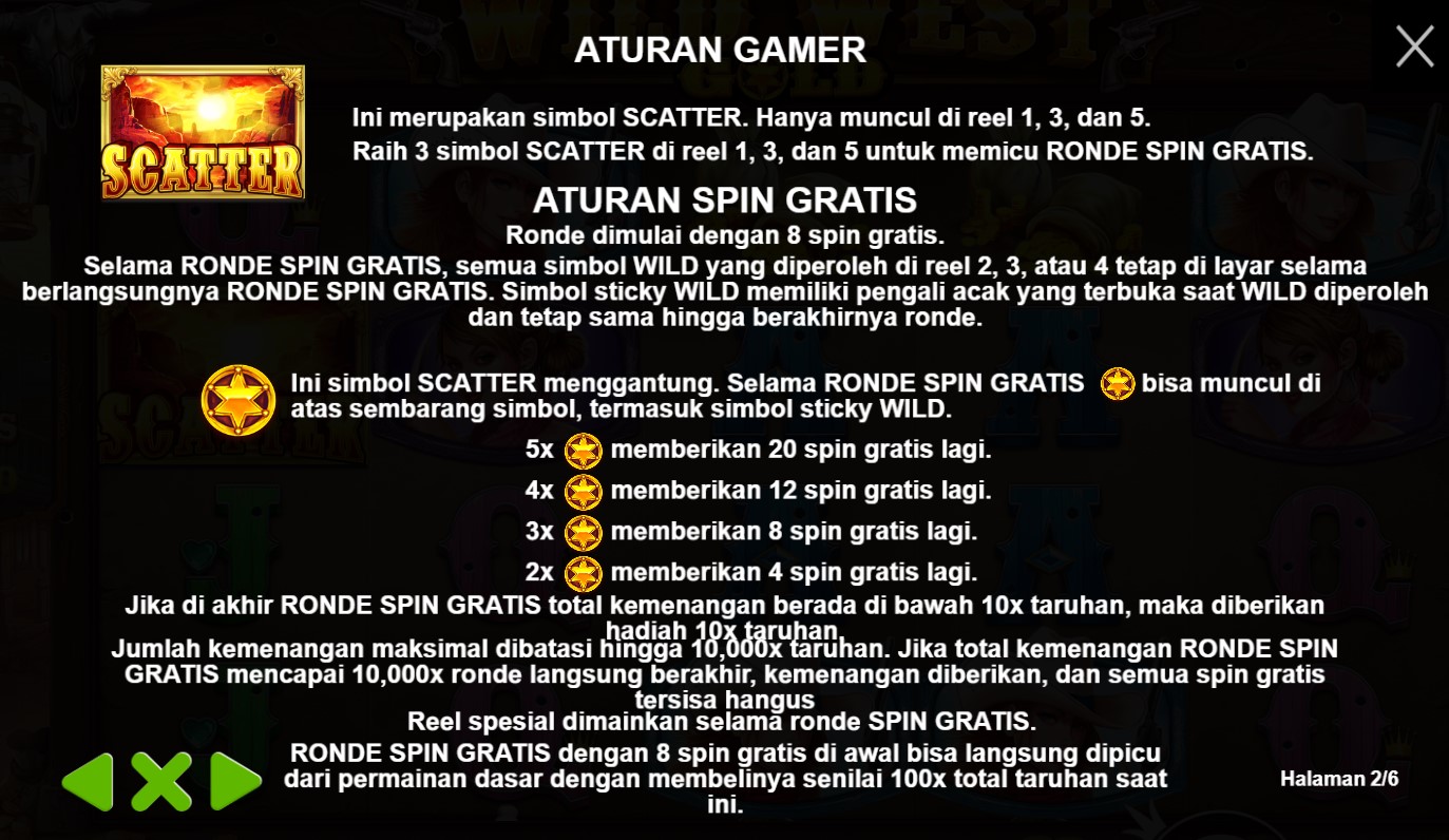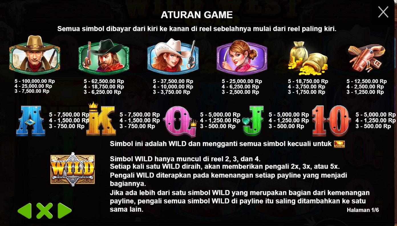 Paytable Slot Online Wild West Gold adalah panduan yang mengungkapkan kekayaan dan kegagahan simbol-simbol yang ada dalam permainan ini. Di dalam slot online yang terpercaya ini, Anda akan menemukan simbol-simbol yang mencerminkan suasana Wild West yang legendaris. Simbol-simbol yang menghiasi gulungan termasuk topi koboi yang keren, pistol yang mengkilap, koin emas yang berkilauan, dan simbol-simbol kartu remi yang dirancang dengan sentuhan Wild West yang khas. Setiap simbol ini memiliki nilai yang berbeda dan dapat memberikan kemenangan yang menggiurkan saat Anda berhasil menciptakan kombinasi yang tepat.