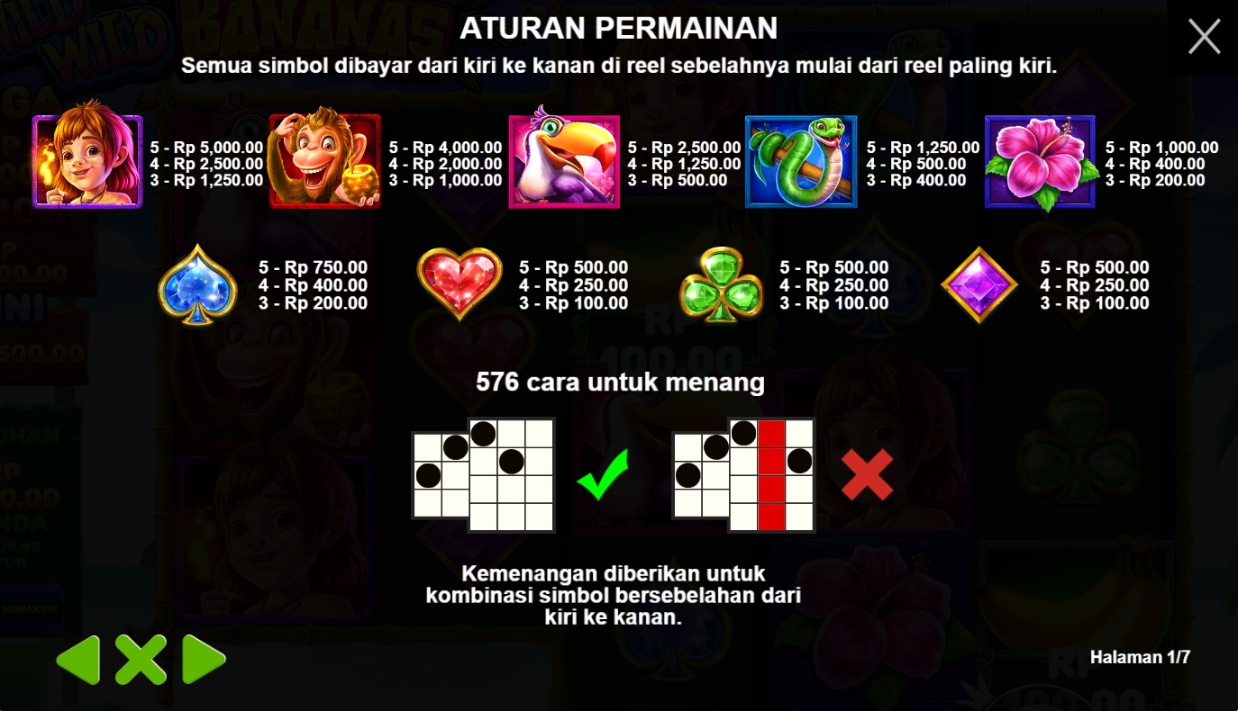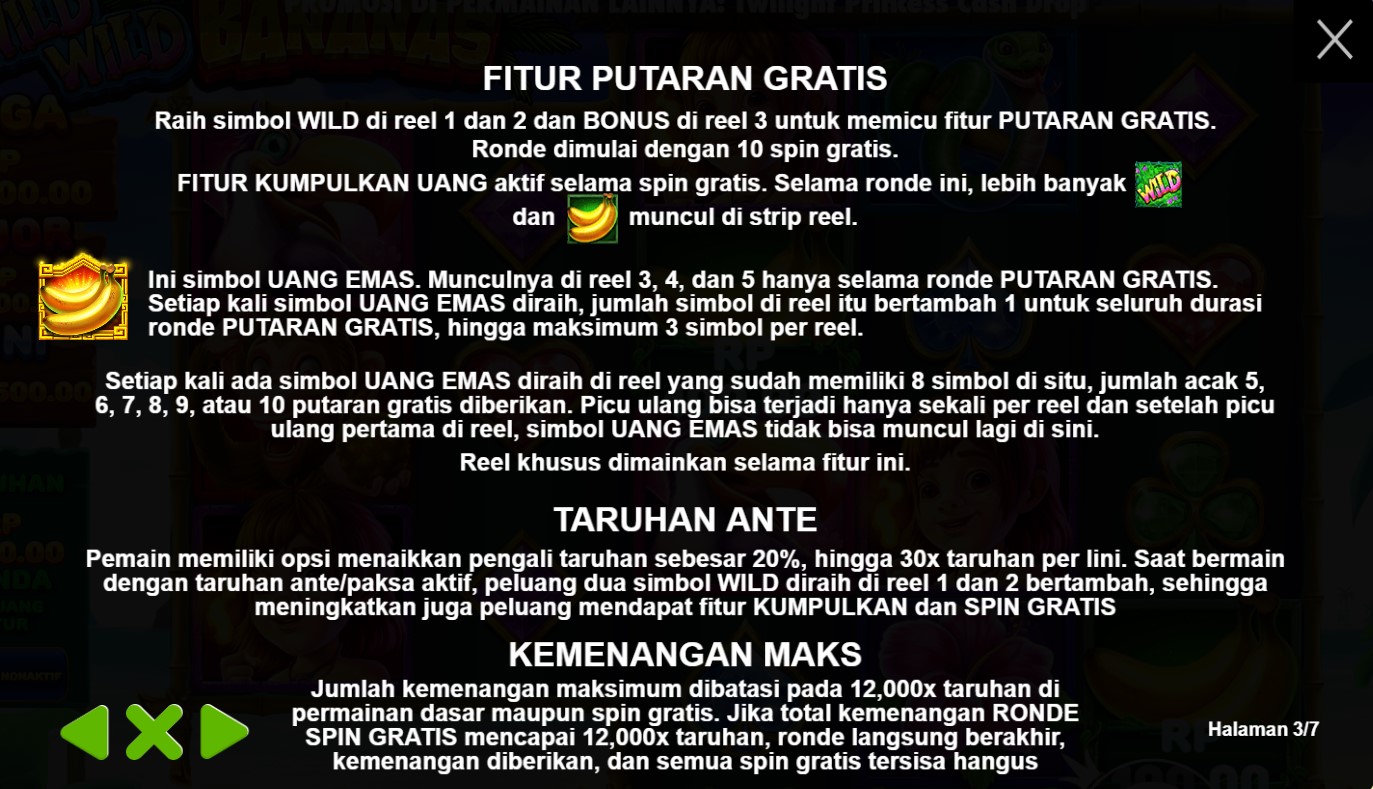 Paytable Slot Online Terpercaya Wild Wild Bananas