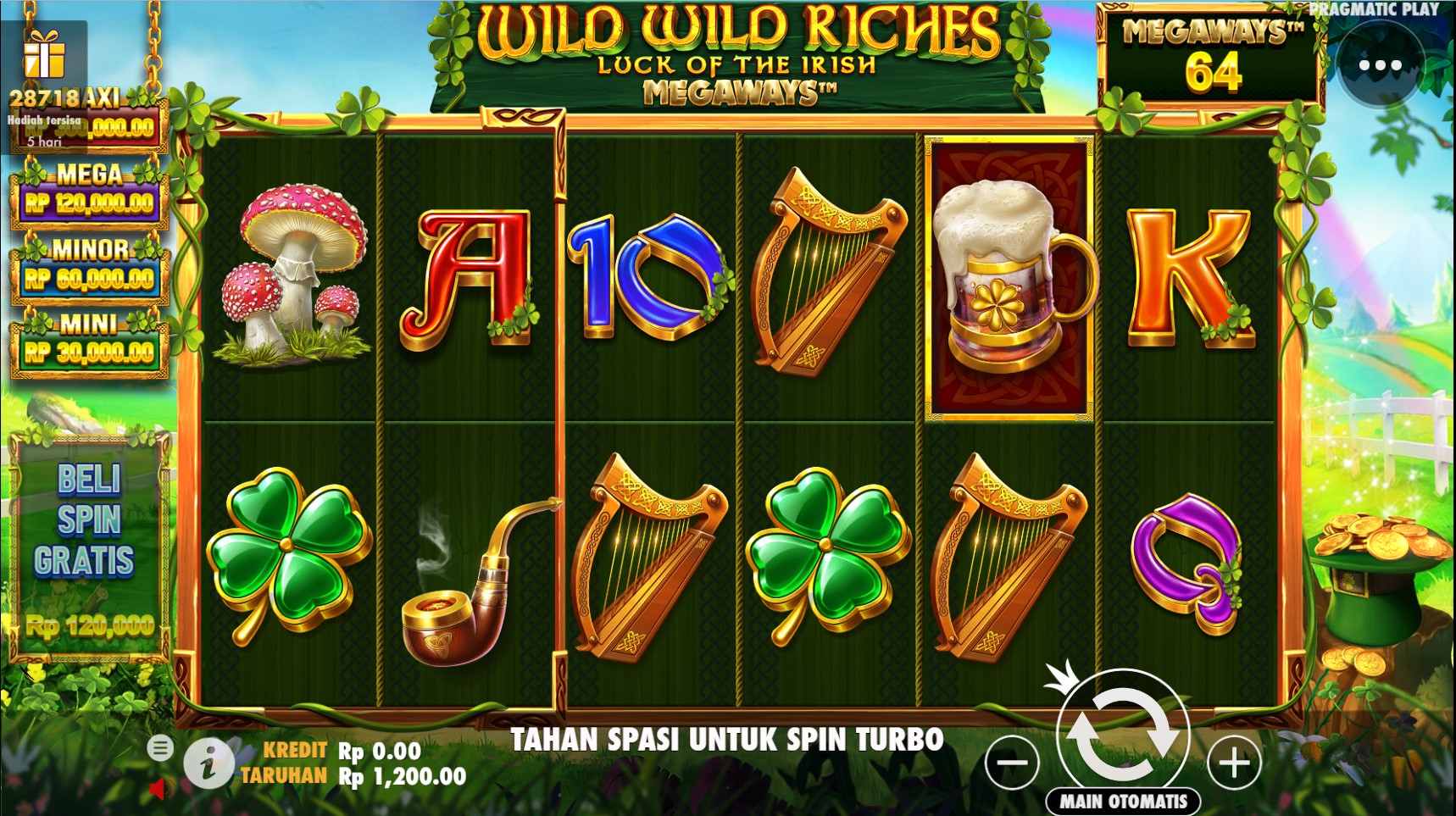 Wild Wild Riches Megaways adalah slot online yang menggabungkan kegembiraan Wild West dengan peluang kemenangan yang melimpah. Dikembangkan oleh Pragmatic Play, permainan ini menawarkan pengalaman bermain yang menarik dan unik dengan fitur khas Megaways yang memungkinkan ribuan cara untuk memenangkan hadiah. Dalam gulungan yang berputar, Anda akan menemukan simbol-simbol yang mencerminkan tema Wild West, seperti topi koboi, sepatu bot, tongkat beruntai, serta simbol-simbol kartu remi yang dirancang dengan sentuhan klasik.