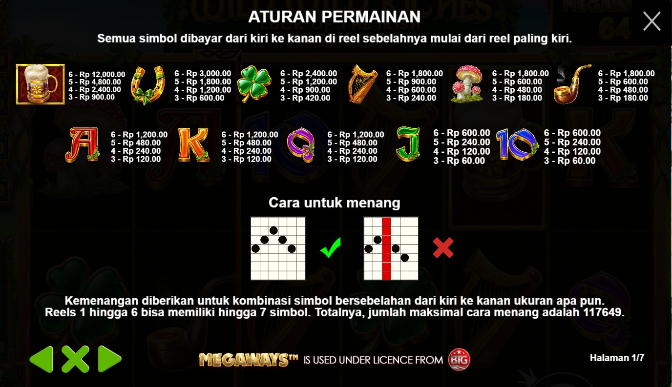 Paytable Slot Online Terpercaya Wild Wild Riches Megaways