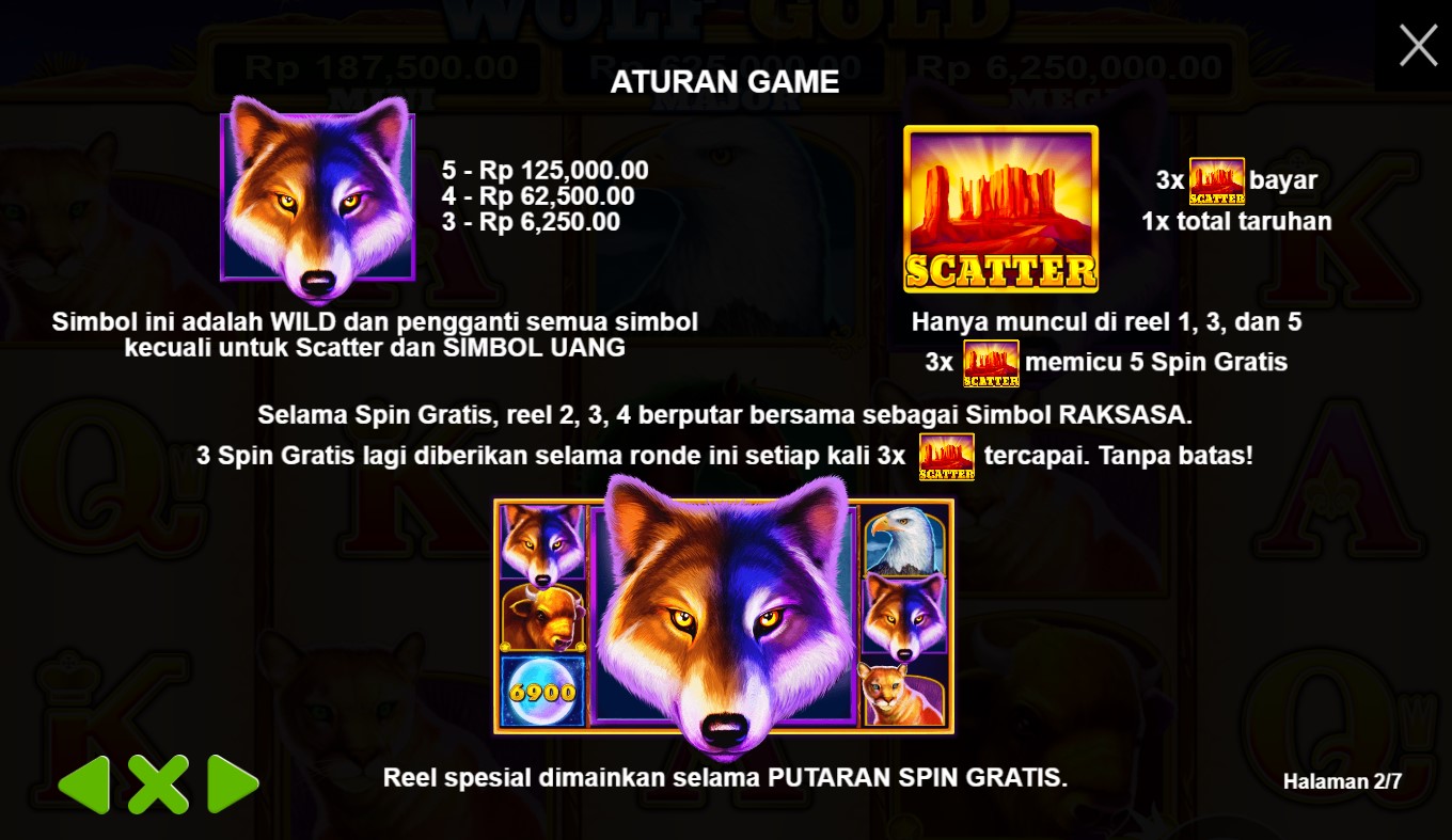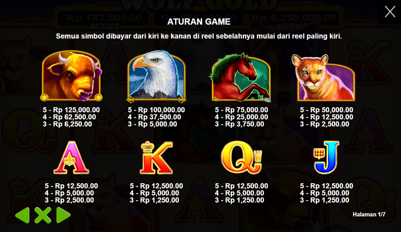 Paytable Slot Online Wolf Gold adalah panduan yang mengungkapkan kekuatan dan keindahan simbol-simbol yang ada dalam permainan ini. Di dalam slot online yang terpercaya ini, Anda akan menemukan simbol-simbol yang menghadirkan nuansa alam liar yang memukau. Simbol-simbol yang menghiasi gulungan termasuk serigala yang gagah, elang yang perkasa, bison yang kokoh, kuda liar yang memikat, serta simbol-simbol kartu remi yang dirancang dengan gaya yang sesuai dengan tema permainan. Setiap simbol ini memiliki nilai yang berbeda dan dapat memberikan kemenangan yang menggiurkan saat Anda berhasil menciptakan kombinasi yang tepat.